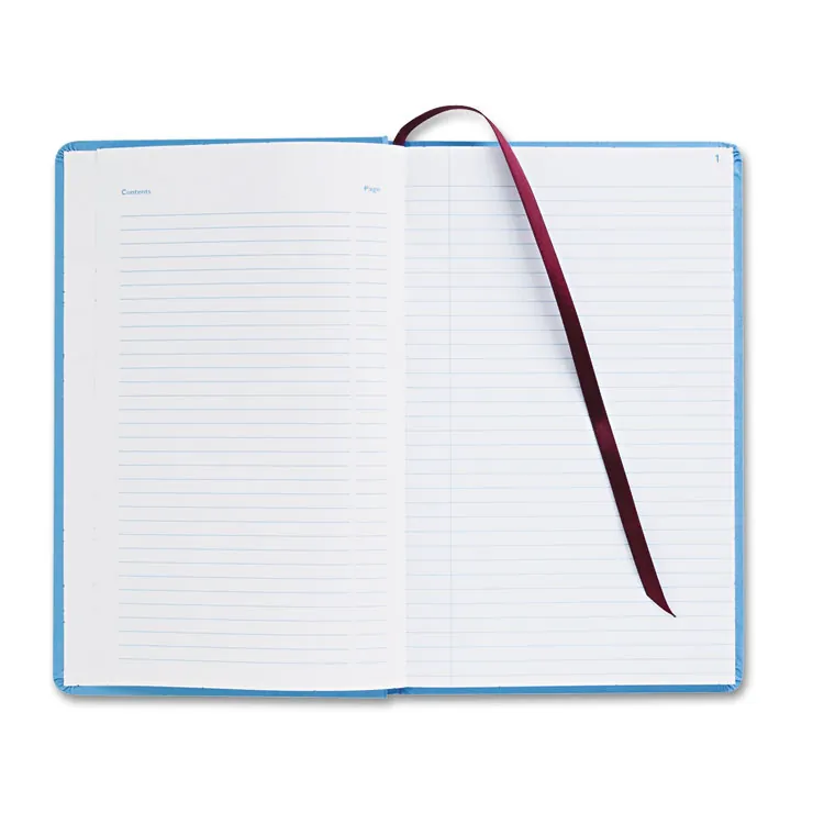 Hardbound journal offers permanent storage made with acid-free paper. Record-ruled pages are sequentially numbered for better organization. Blue cloth cover features a printed design, title and spine. Smyth Sewn binding creates a permanent record and allows the pages to lie flat for easy reading and writing. Journal includes a table of contents page and place-marking ribbon.