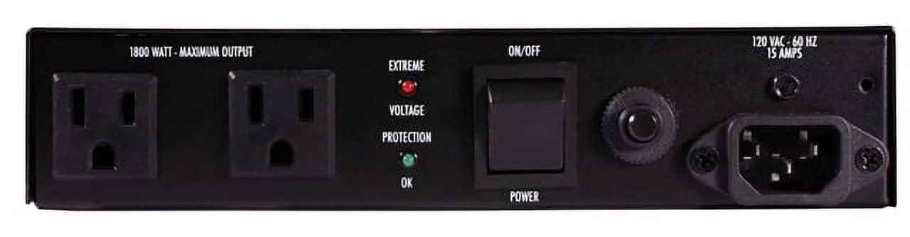 Additionally, the unit is equipped with Auto Reset Extreme Voltage Shutdown (EVS) to guard against unsafe voltage conditions and automatically restores power once the levels normalize. With its slim design, the AC-215A effortlessly fits behind displays or within tight rack spaces, making it a perfect fit for installations where reliable protection and clean power are essential.