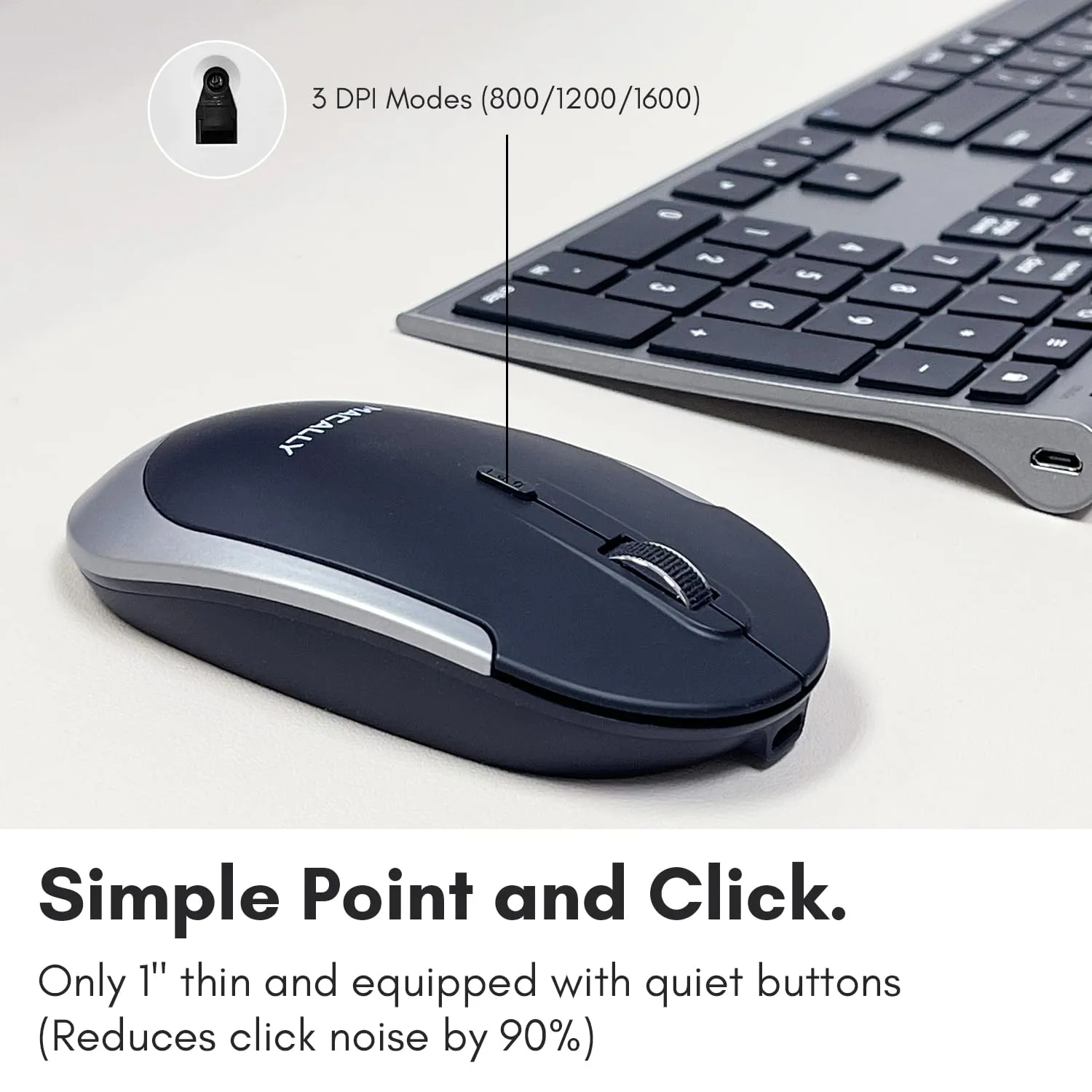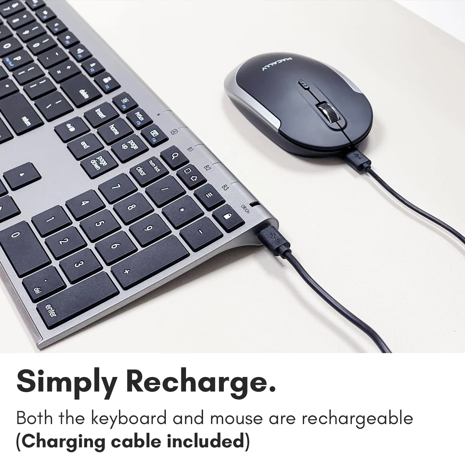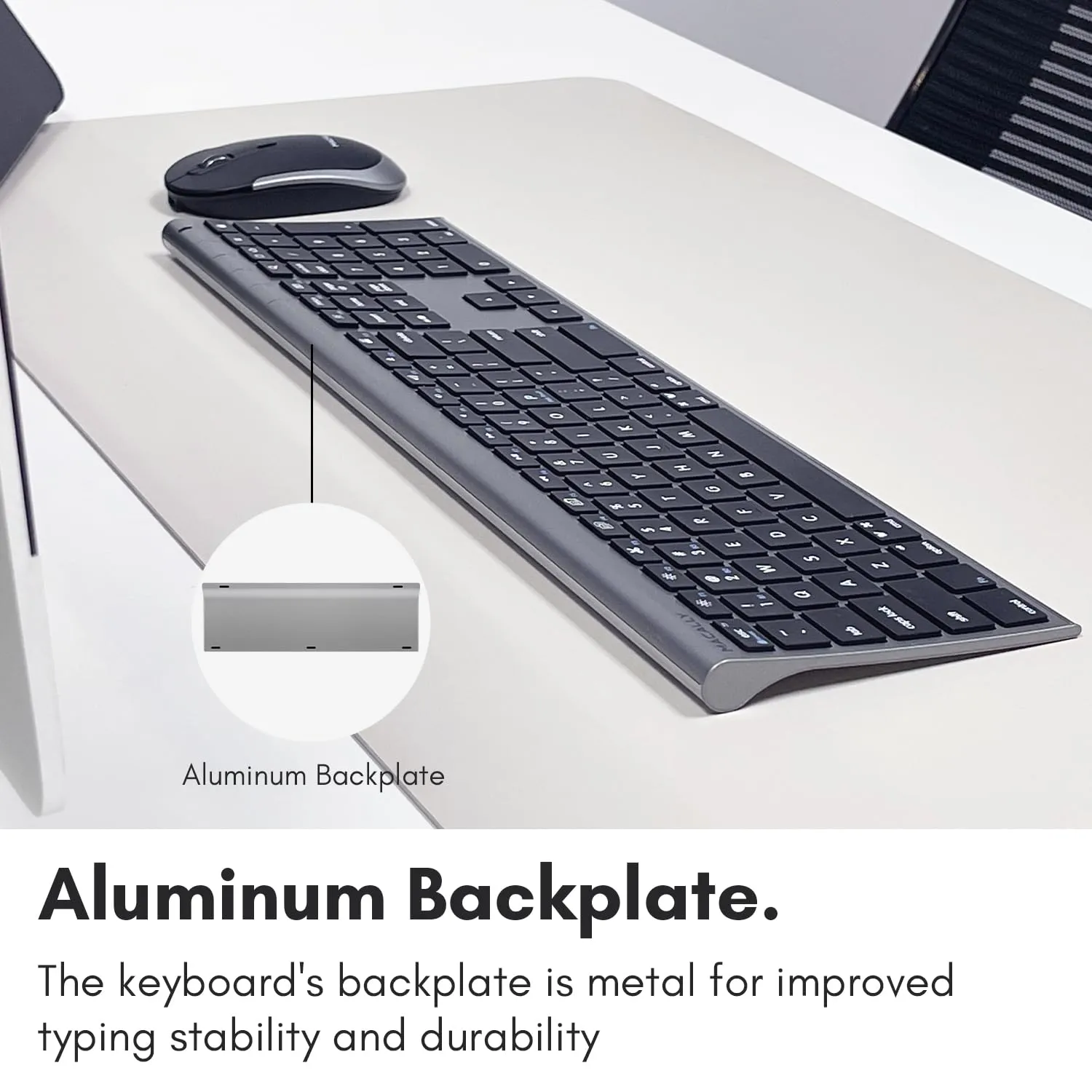 This sleek and stylish Bluetooth Keyboard and Mouse Combo in Space Gray is perfect for your workspace. With rechargeable batteries, it offers convenience and sustainability. Enjoy a comfortable typing experience and precise navigation with this elegant pairing.