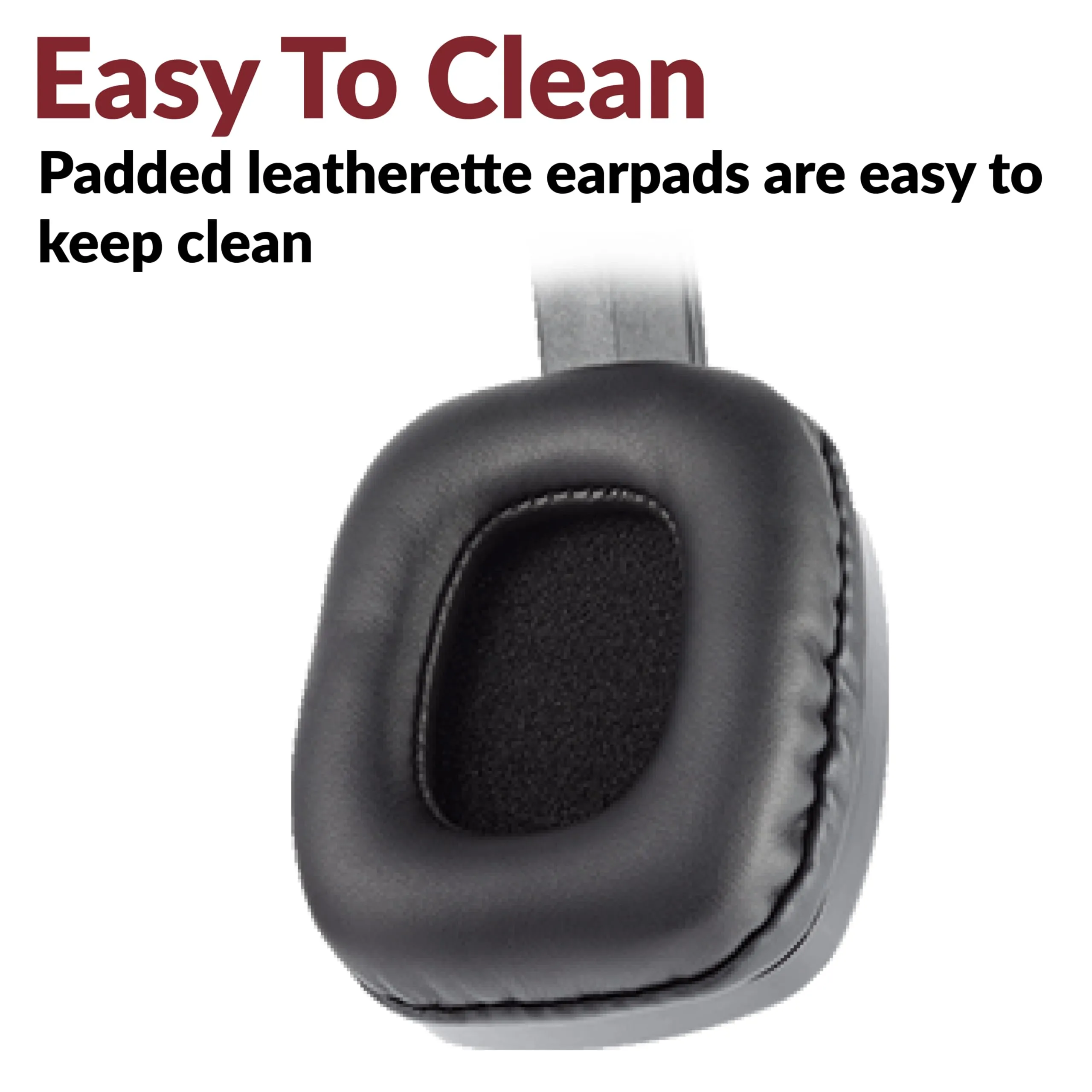 The adjustable headband flexes to fit most individuals, and the easy-clean leatherette earpads cushion ears during long sessions. Inside, 30mm drivers deliver wide-range stereo sound (20Hz–20kHz, 32Ω), making them great for lectures, virtual meetings, or casual media.