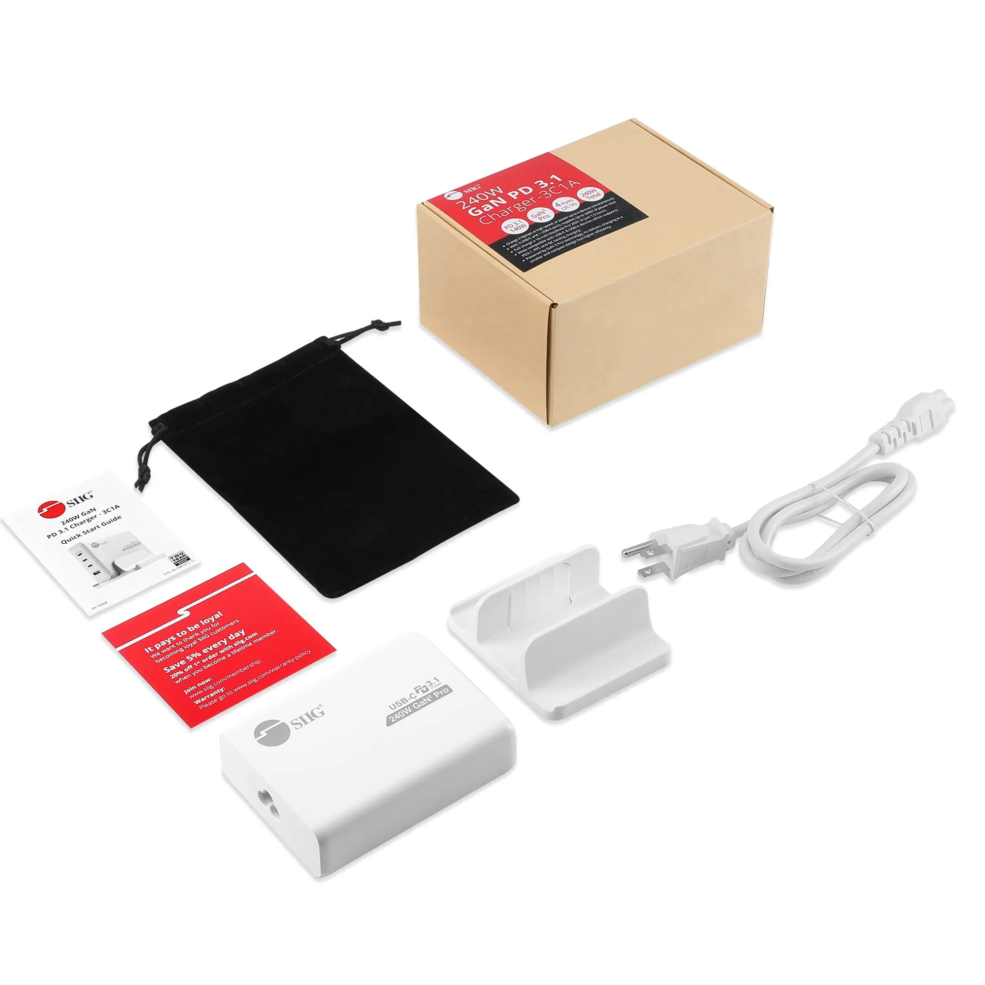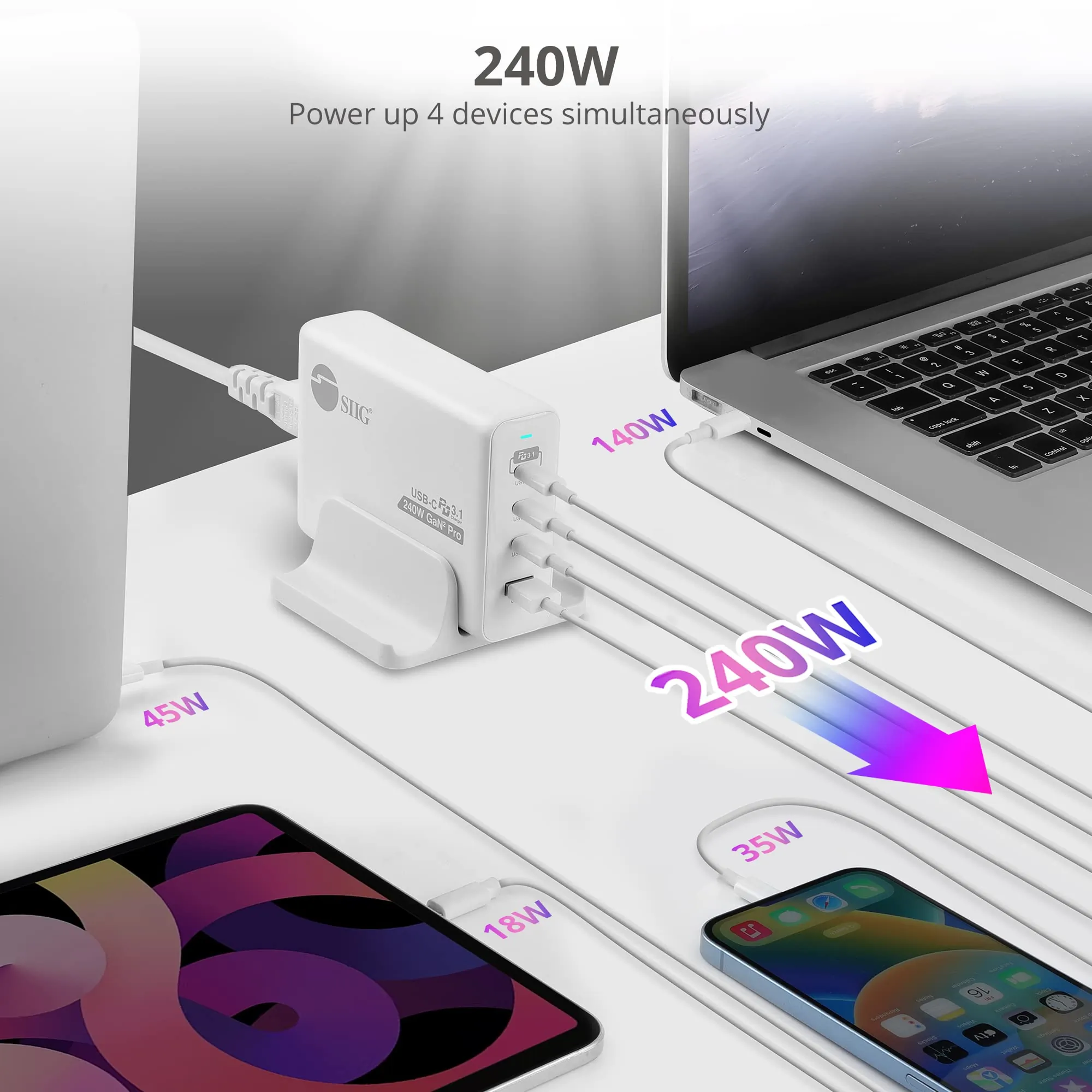 Experience rapid charging with the 240W GaN PD 3.1 Charger. This powerful charger offers a total output of 240W, making it ideal for high-demand devices.
