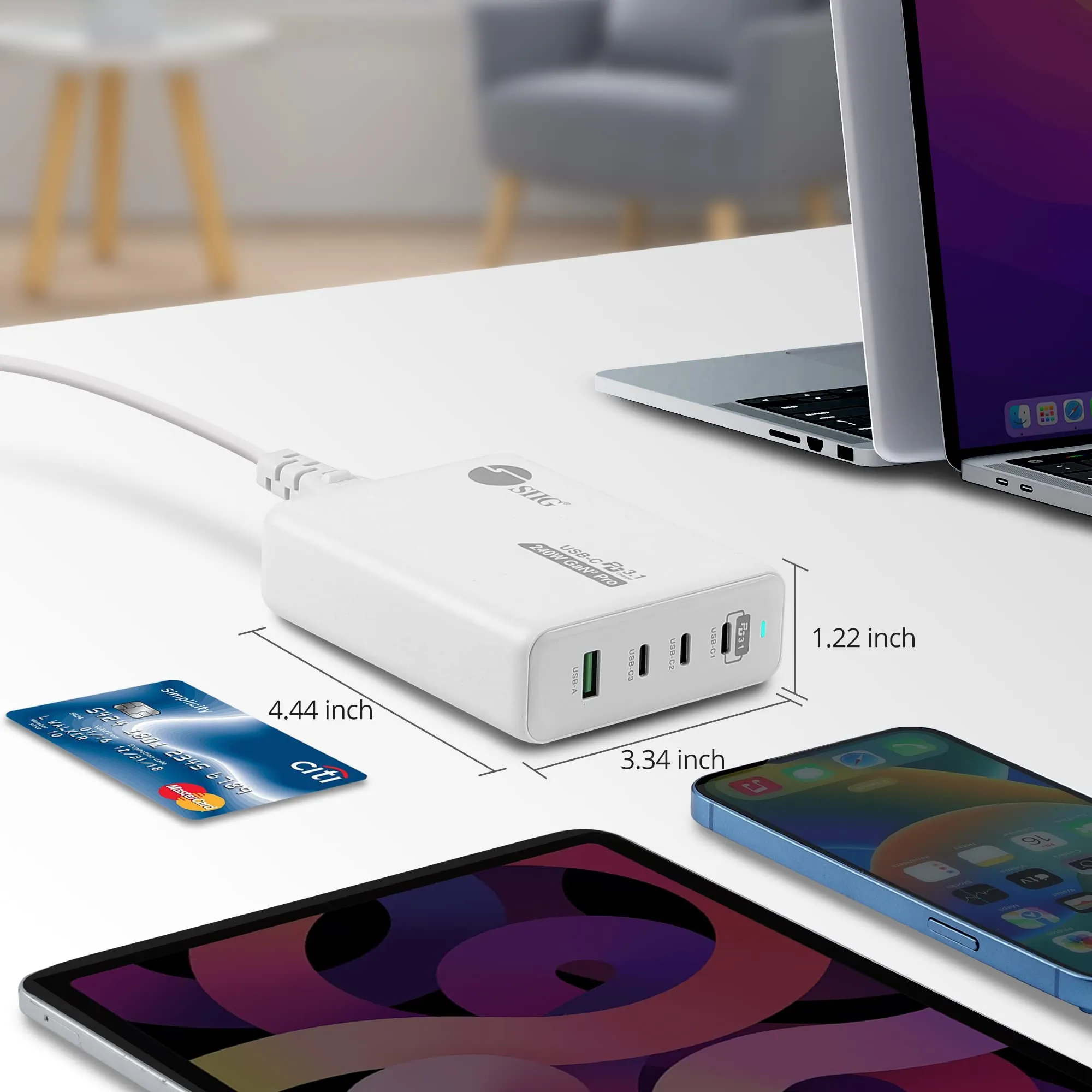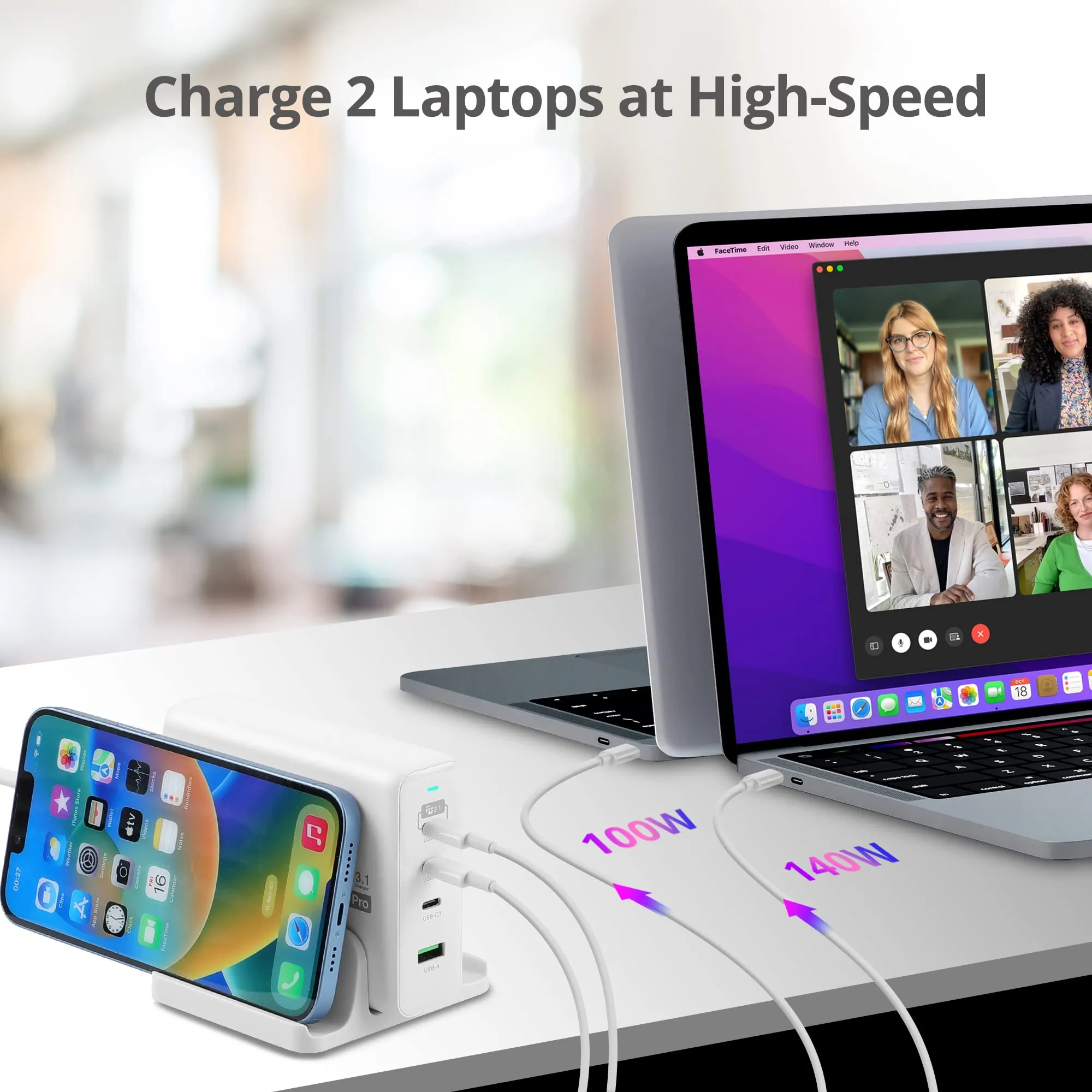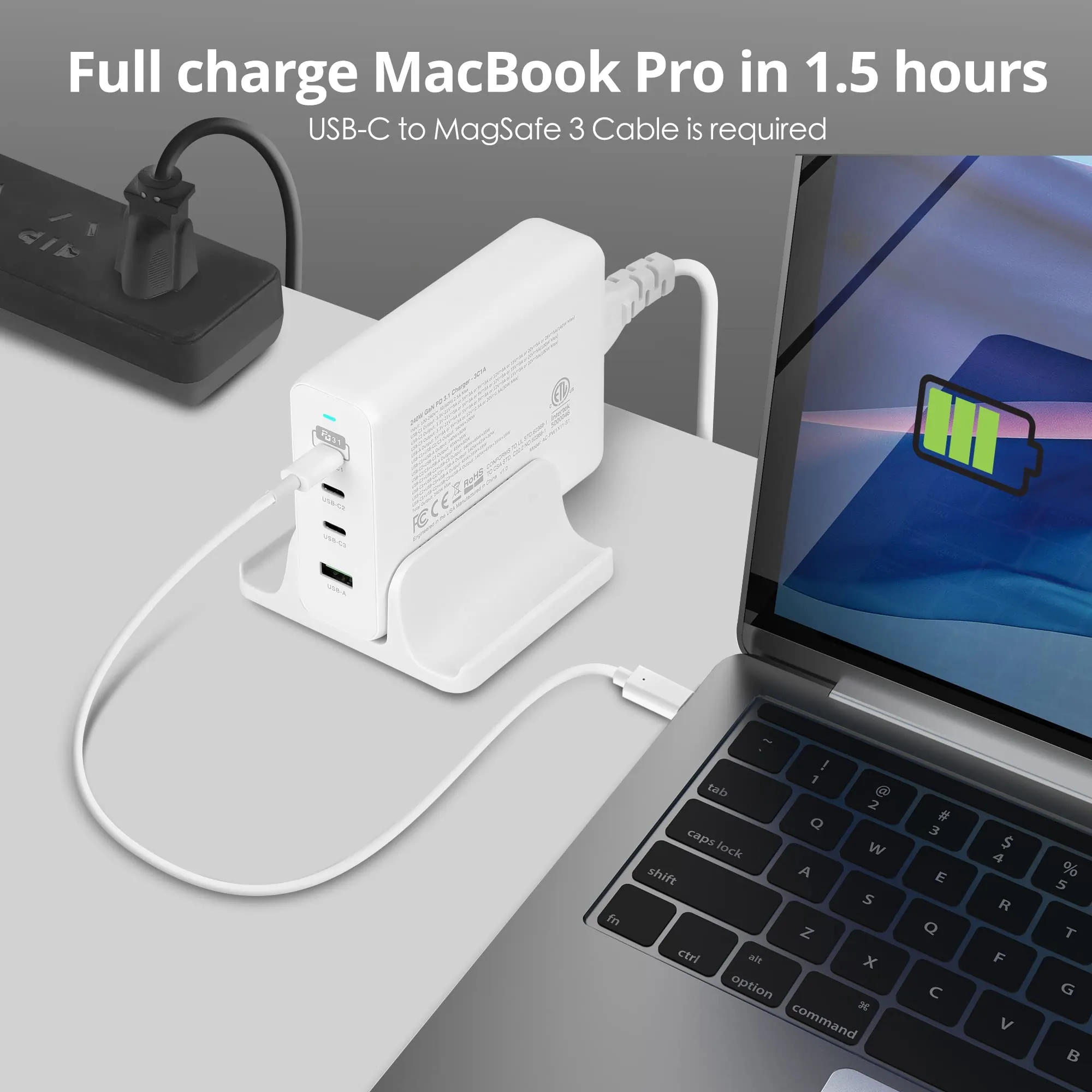 Compatible with PD 3.1 and PD 3.0, this charger is perfect for Windows and MacBook Pro laptops, iPad Pro, tablets, smartphones, and smartwatches. Includes a convenient stand holder for easy use.