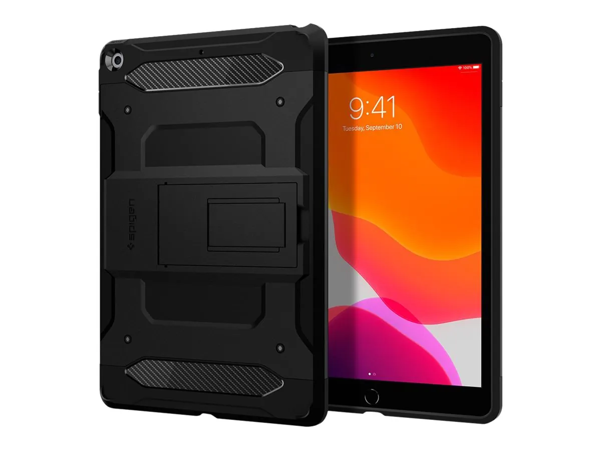 The Tough Armor Tech Case for iPad 10.2 in black provides full front and dual-layered back protection for optimum defense against drops and impacts.