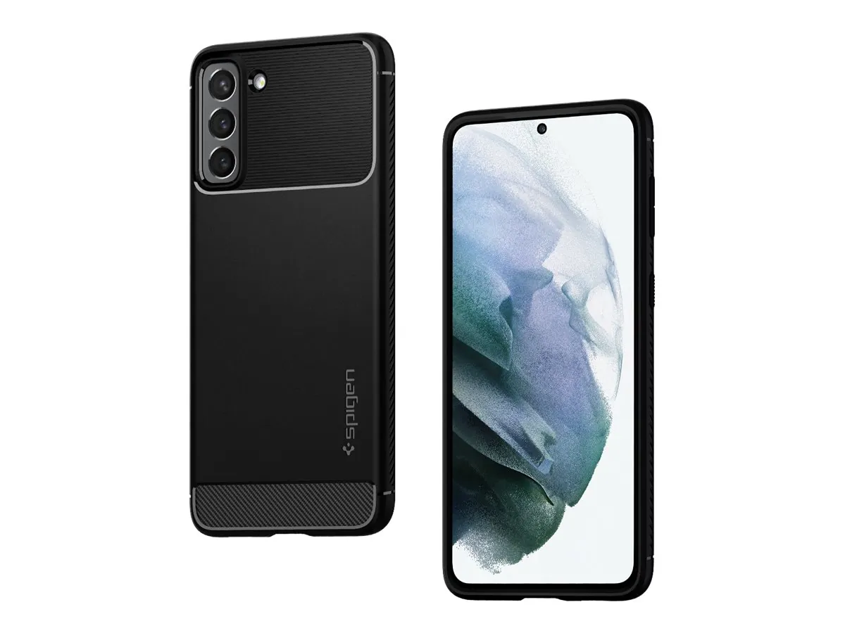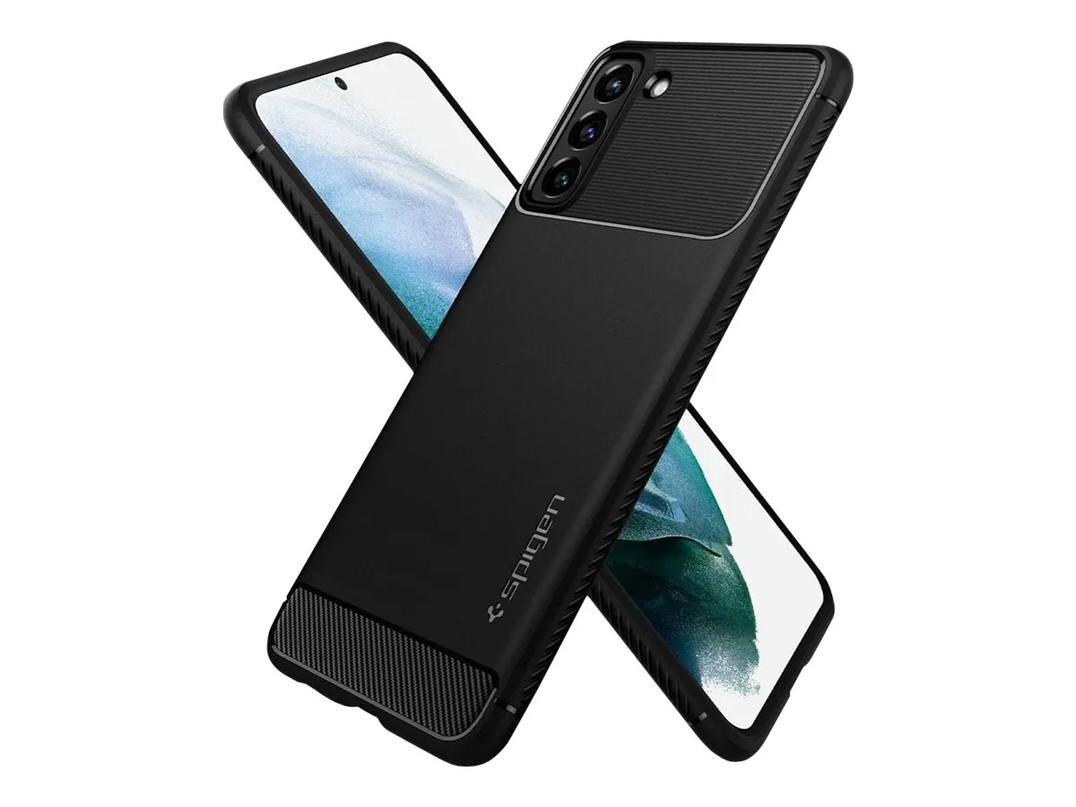 The Rugged Armor Case for Galaxy S21 Plus 5G is expertly crafted with a sleek design inspired by automotive aesthetics. This protective case wraps your device in durable materials while maintaining a slim profile. Textured carbon fiber detailing adds a modern touch, complemented by subtle glossy accents that enhance its appeal.