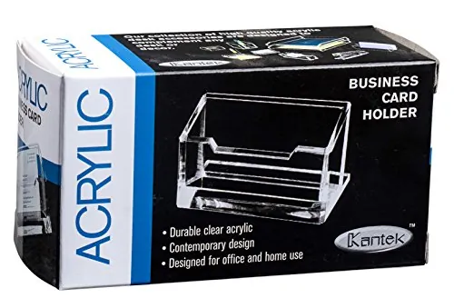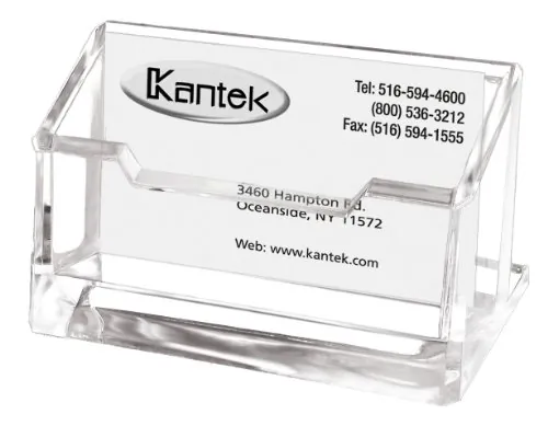 The angled, transparent design of this Clear Acrylic Business Card Holder provides easy access to cards. Offers an 80-card capacity. Made of heavy, polished cast acrylic for durability and a sleek, contemporary look. Includes nonskid feet.
