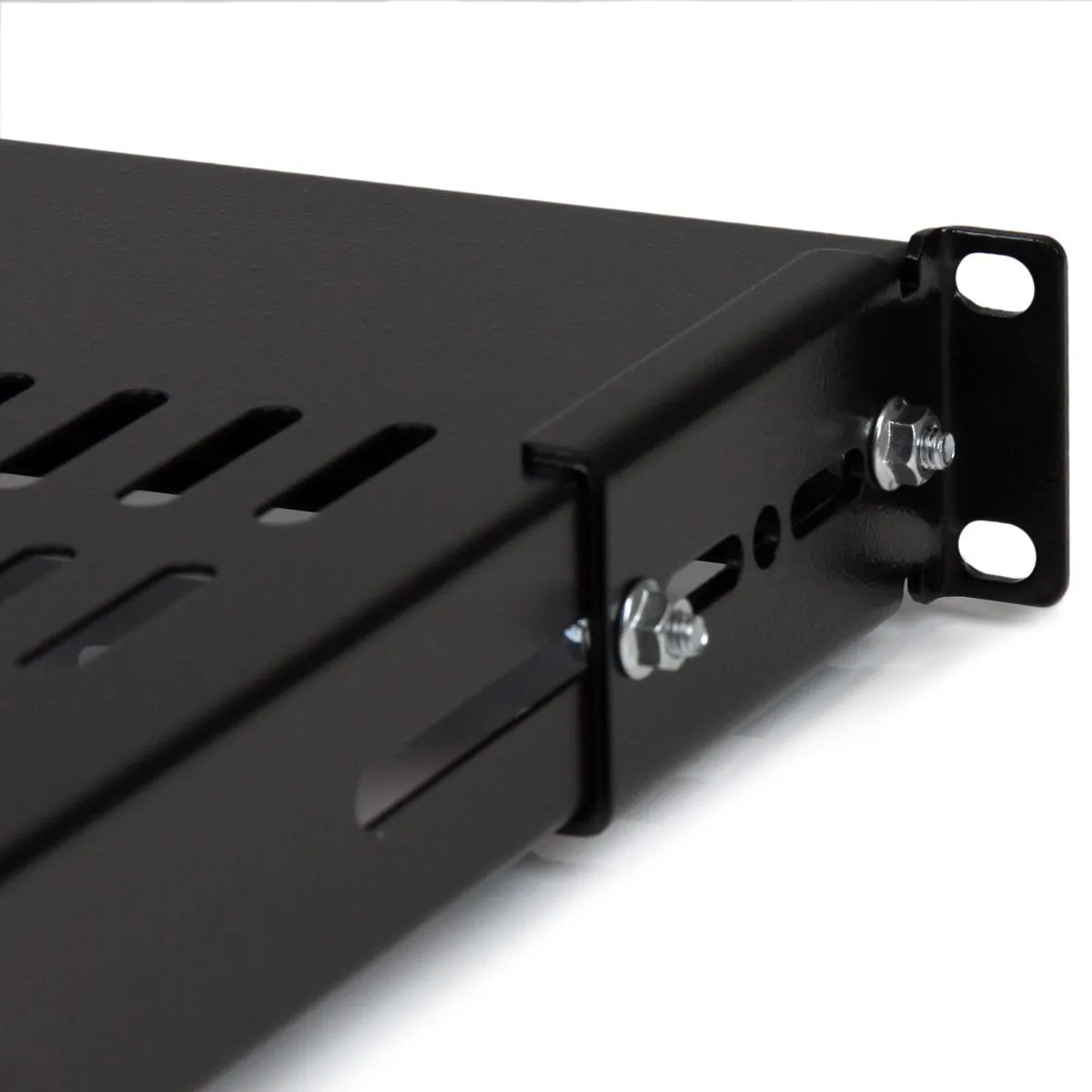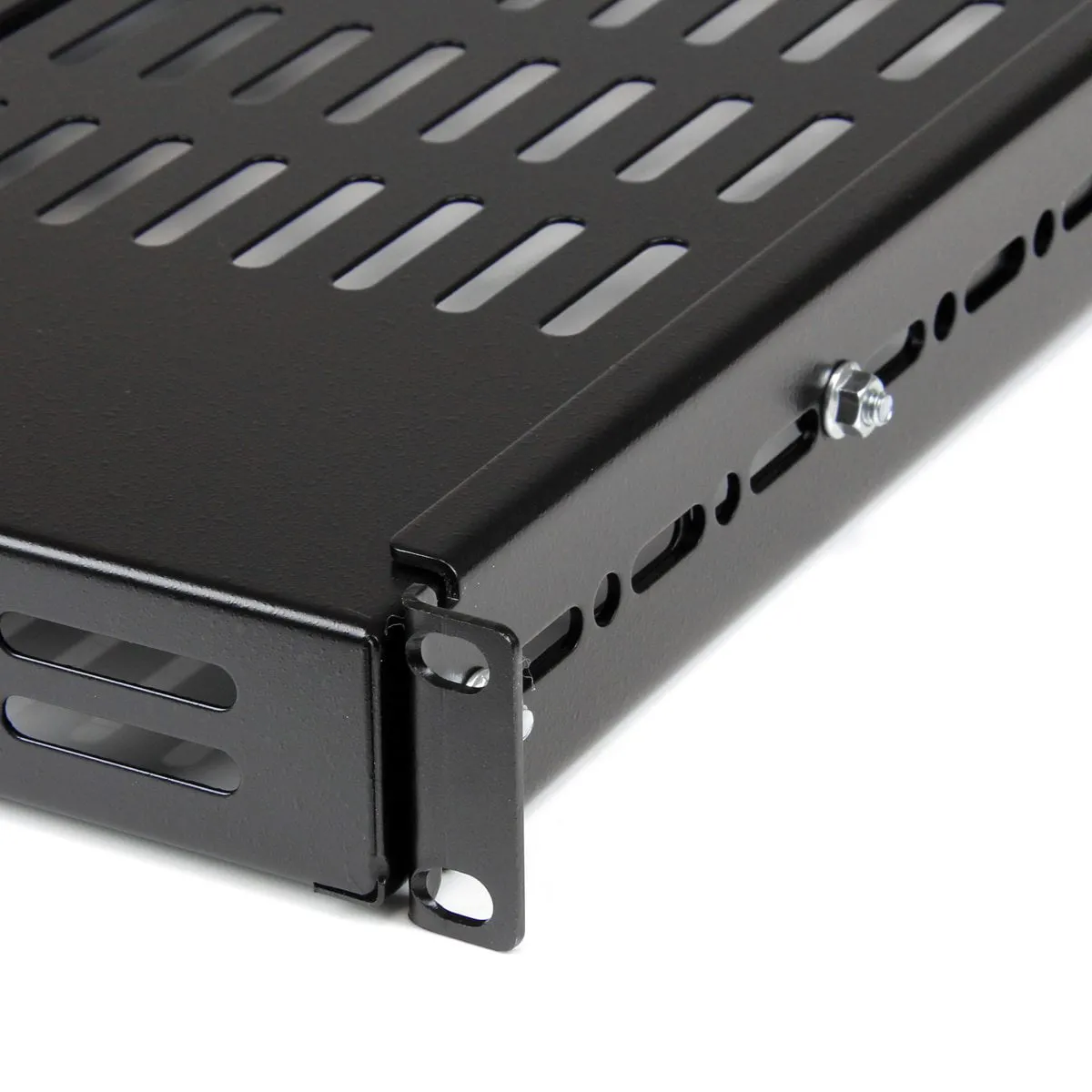 Add a sturdy adjustable mount depth shelf into almost any server rack or cabinet Compatible with StarTech.com 4POSTRACKBK 1U Server Rack Shelf Adjustable Rack Mount Shelf 175lbs (80kg) Weight capacity 27.6in (700mm) deep shelf Mounting depth adjustable from 19.538.3in (495974mm) Universal rack shelf fits all standard 19in wide server racks or cabinets Highcapacity shelf for storing networking devices KVM switches tools and equipment in your server room or office