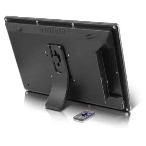 Aluratek 18.5" Digital Photo Frame with 4 GB Built-In Memory (1366 x 768 Resolution, 16:9 Aspect Ratio):View high quality digital photos on the 18.5? TFT true color LCD at 1366 x 768 resolution (16:9 aspect ratio)High quality frame with built-in speakers and easy to use controls Supports various picture, video and audio formats as most file formats are automatically recognized (jpeg, avi, mp3)Configure photo slideshows to play in various display and transition modes with the background music of your choiceSupports SD / SDHC memory cards (up to 32 GB) Connect a USB flash drive or SD card to easily access and share your favorite pictures, music, or videos Transfer and store files quickly and easily from your personal computer to the frame's 4 GB built-in memory with high speed USB 2.0 Includes built-in clock, calendar and auto on / off timer Security slot - securely lock your frame to prevent theft Adjustable frame stand for multi-angle viewing Wall mountable - works great as a digital signage solution Compatible for use with a VESA mount Compact remote is included for ease of operation and control Limited 1 Year WarrantyADMPF118F / 8-12658-01244-7