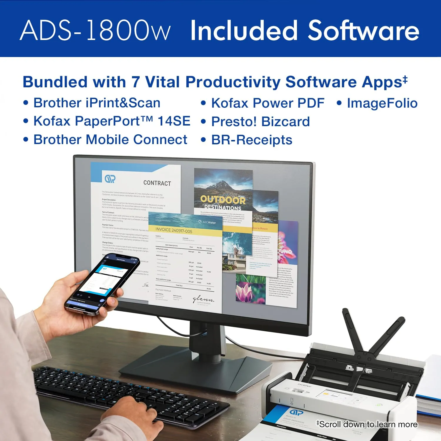 The Brother ADS-1800W is a versatile wireless document scanner designed for office and home use. With fast scanning speeds and a variety of connectivity options, it simplifies document management and enhances productivity.