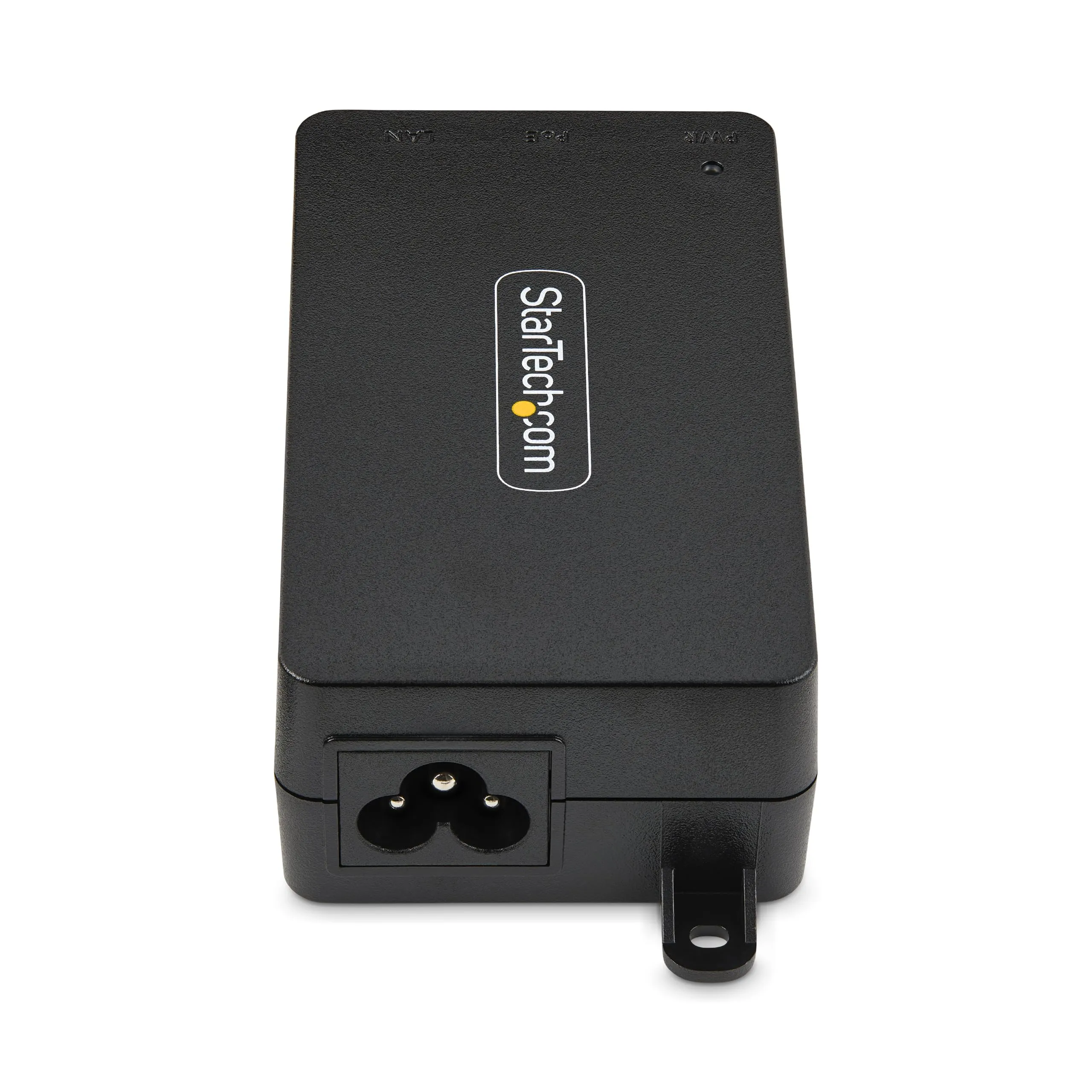 Single port unmanaged PoE++ injector supports up to 2.5/5/10G Ethernet and 10/100/1000Mbps - Up to 60 Watts PoE/PoE+/PoE++ (802.3af/at/bt) output to a remote Powered Device (PD) - Extend power and Gigabit data at distances of up to 100m - Features network multi-speed auto-negotiation; Surge protection up to 2Kv; No software or drivers required - Inline injector is ideal for powering remote IP cameras/WiFi APs/PoE lighting/signage boxes; Wall mountable