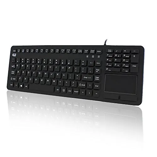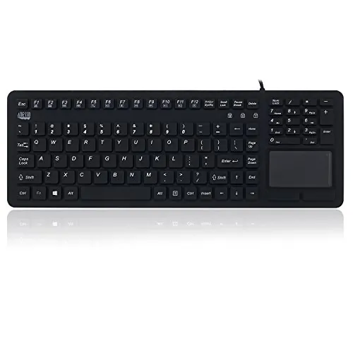 Adesso Antimicrobial Waterproof Touchpad Keyboard - Cable Connectivity - USB Interface - 108 Key Windows Key Hot Key(s) - English (US) - MAC - TouchPad - PC, Mac OS, iOS, Windows - Membrane Keyswitch - Black