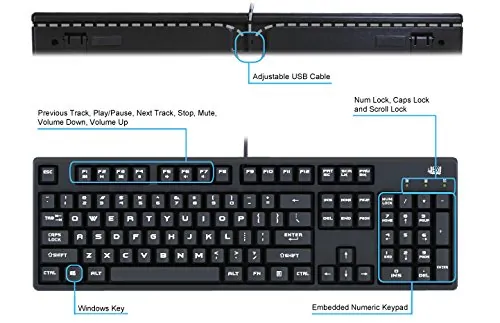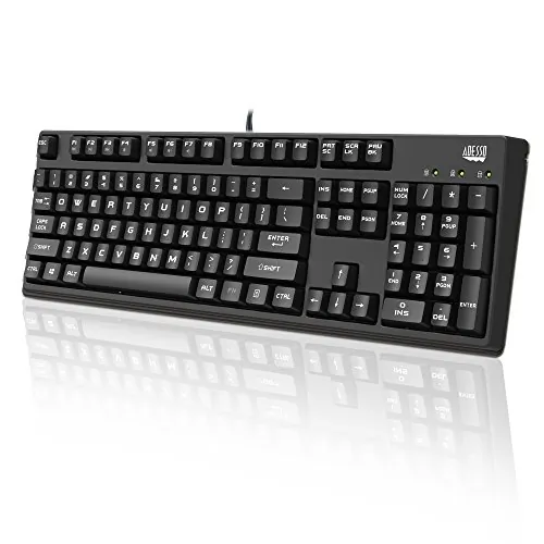 The Adesso® AKB-635UB Full Size Mechanical Keyboard is the perfect keyboard for users that love efficiency. This sturdy keyboard features crisp mechanical keys for increased productivity, N-Key Rollover allowing up to 6 keys to be pressed at the same time, multi-functional hotkeys that give you quick access to your media player tools, as well as the ability to lock your Windows key. You can also re-route your USB cable to the front or either side of the keyboard, saving space for the wire, while preventing fraying or damage to the wire. With the smooth action of the mechanical keys you can type faster than you imagined, handling up to 50 million keystrokes. The smooth and crisp tactile feedback allows you to have a faster, more accurate typing experience and contains 45-50g of actuation force!