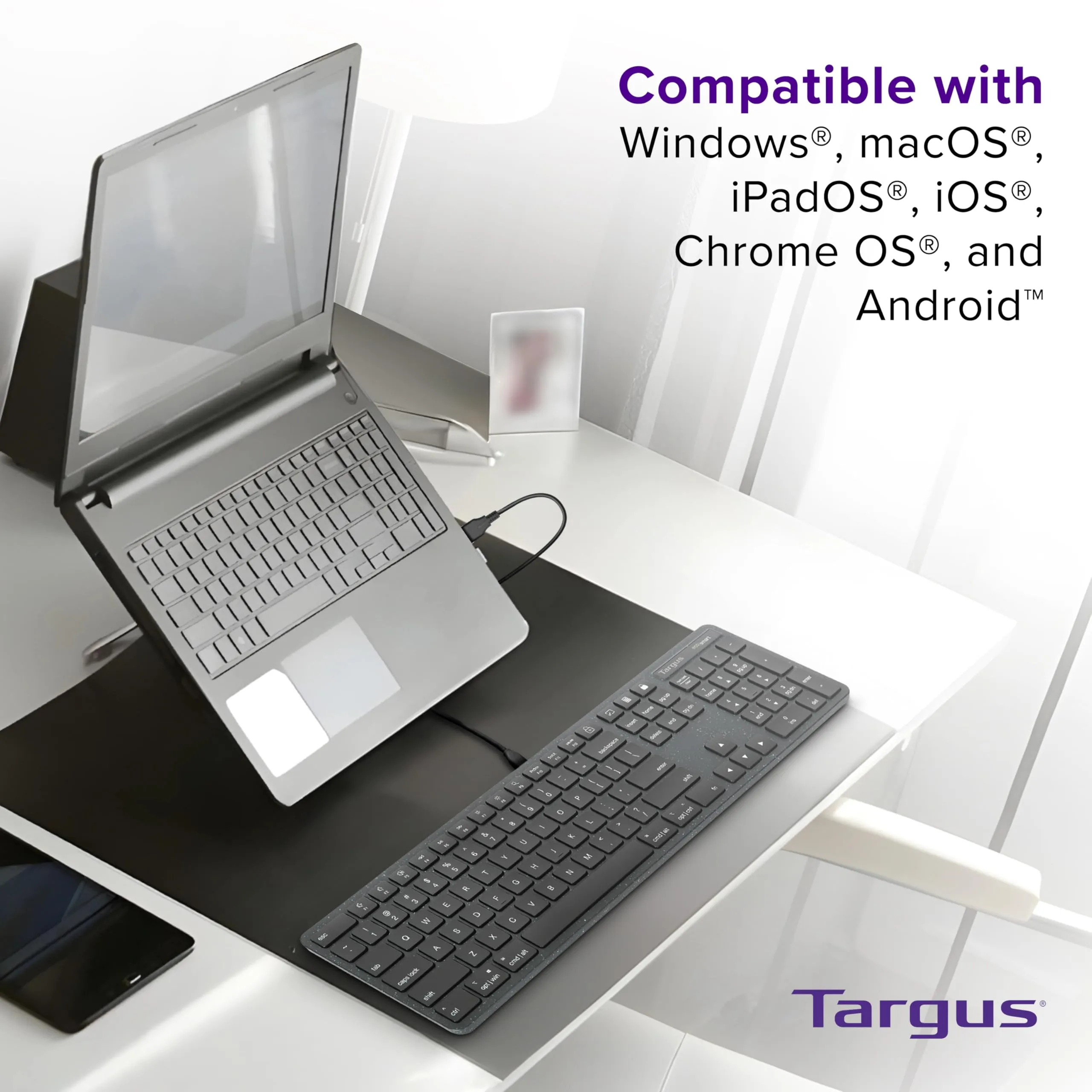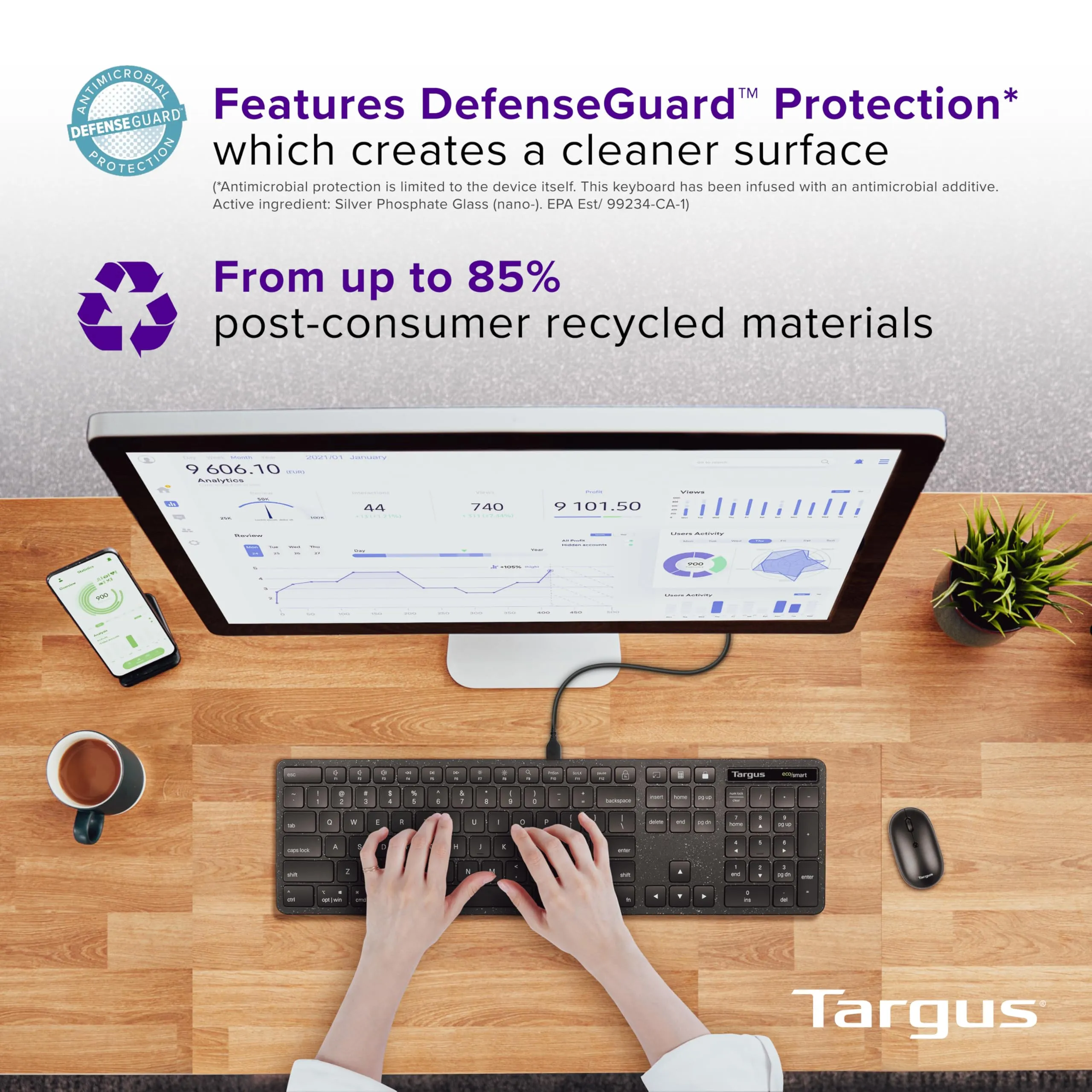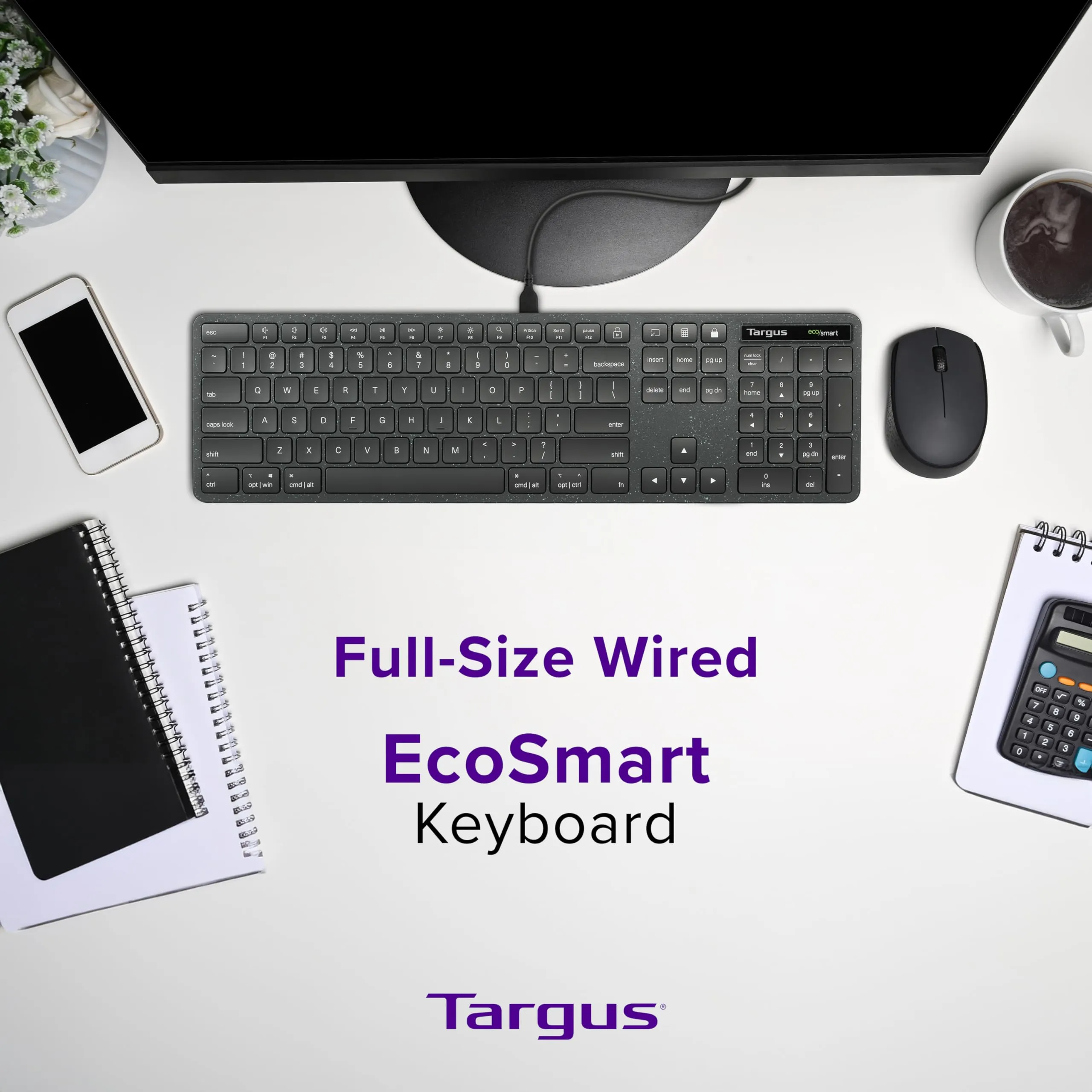 The EcoSmart Full-Size Wired Keyboard is designed for efficiency and comfort, combining sustainability with everyday functionality.