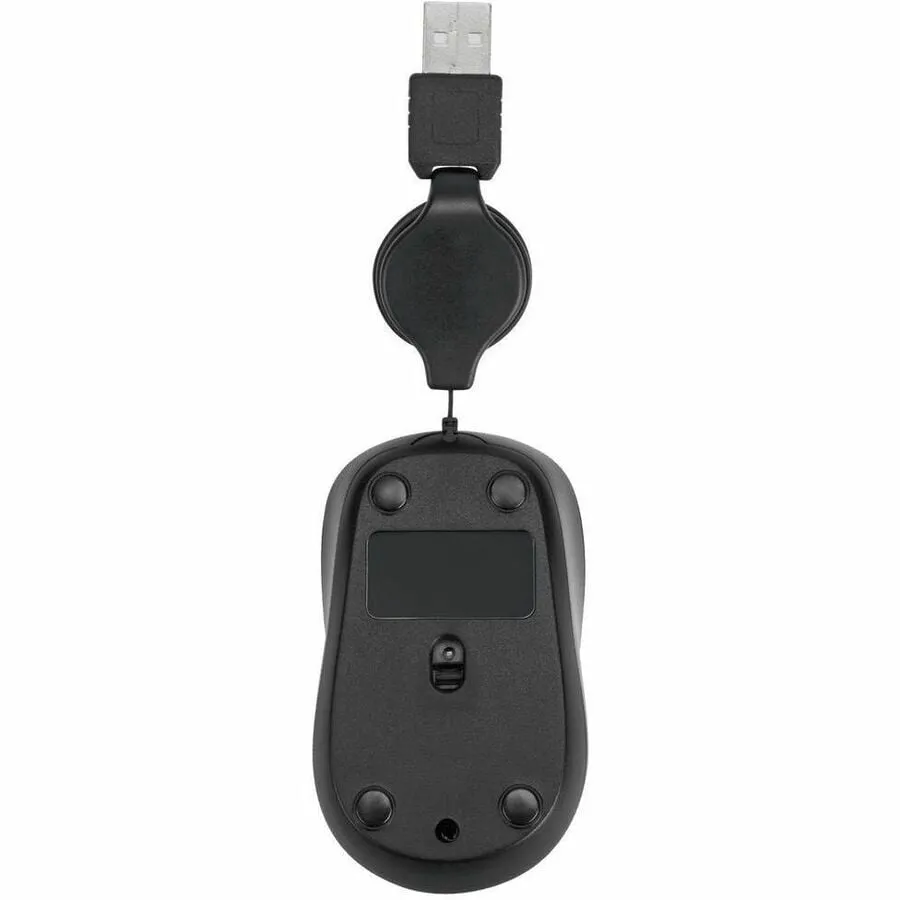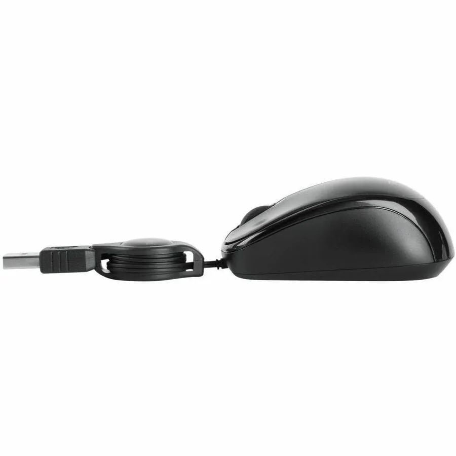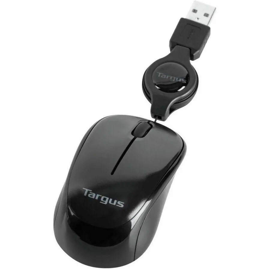 The Targus Compact Optical Mouse with "Blue Trace" is the perfect solution for travelers who need to save space when using an external mouse. The integrated scroll button allows you to scroll up or down through spreadsheets or browse the internet. The retractable cord adjusts allowing users to choose the length needed to save space in compact work environments. Featuring a standard USB connection, the mouse is ready to work out of the box. The sleek black and gray design provides added style, while the contoured shape provides ergonomic support for left and right handed users. At only 3" long, the Targus Compact Mouse is small enough to conveniently carry in a laptop bag for comfortable mousing on the go