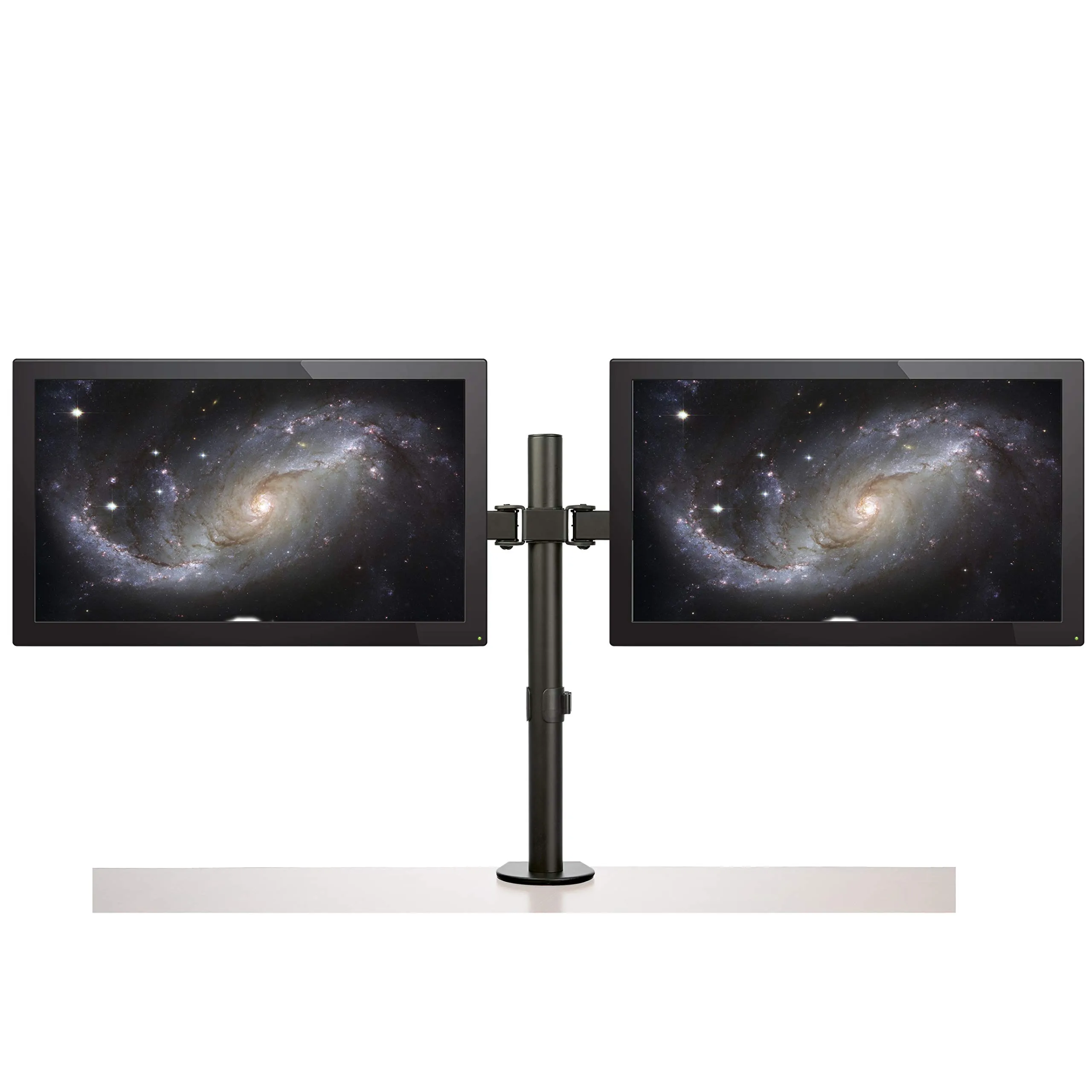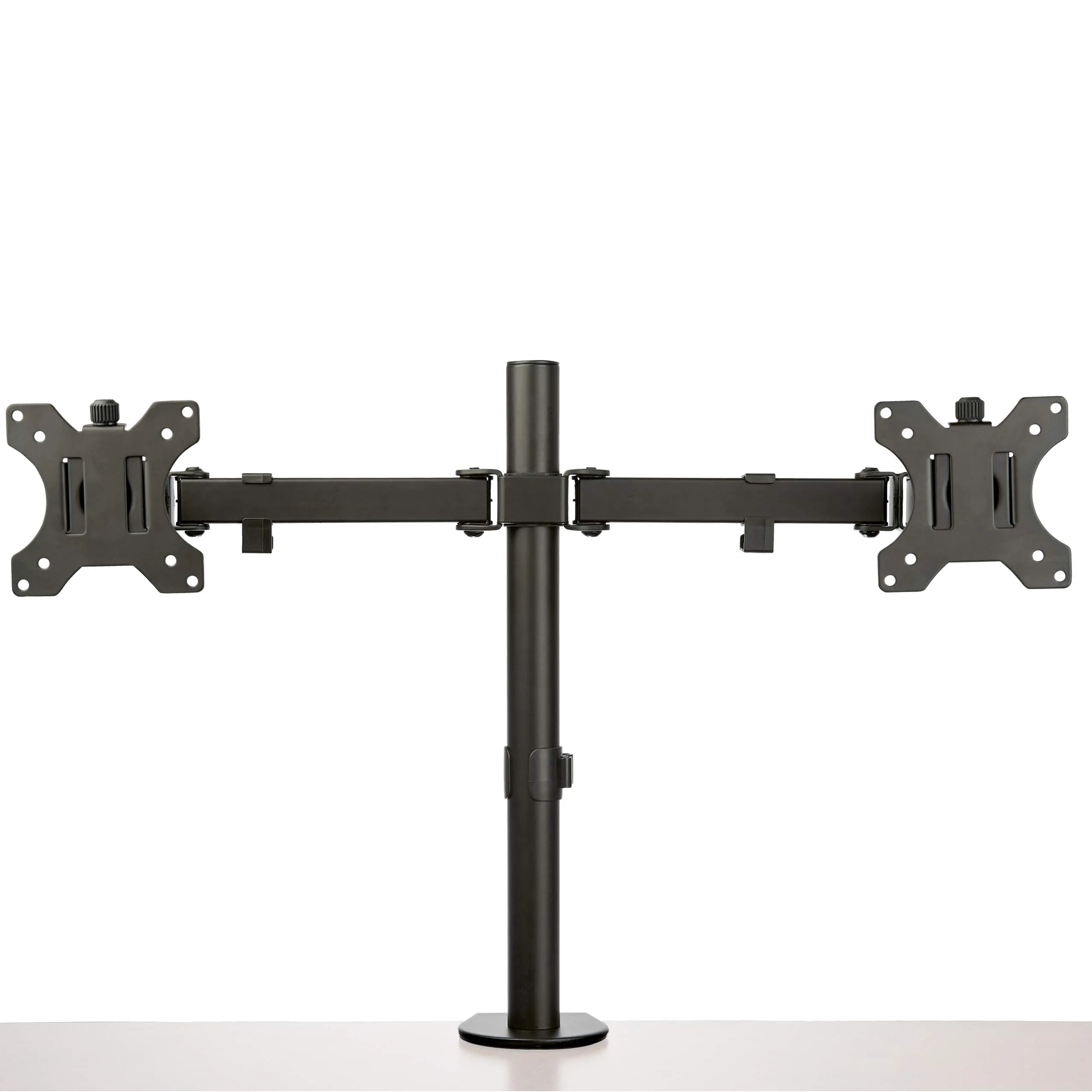 Mount two monitors to your desk and adjust the height and position of your displays for optimum viewing Desktop Mount Dual Monitor Arm for 2 monitors up to 32" and up to 17.6lb/8kg per screen Steel multiple monitor mount with +/ 45 tilt +/ 90 swivel and 360 rotation Each articulating arm extends 15.7"/39.9cm Flexible double joints on the arms let you re position or turn your screens up to 180 Height adjustable on the pole Desk C clamp / grommet mount with detachable VESA plate