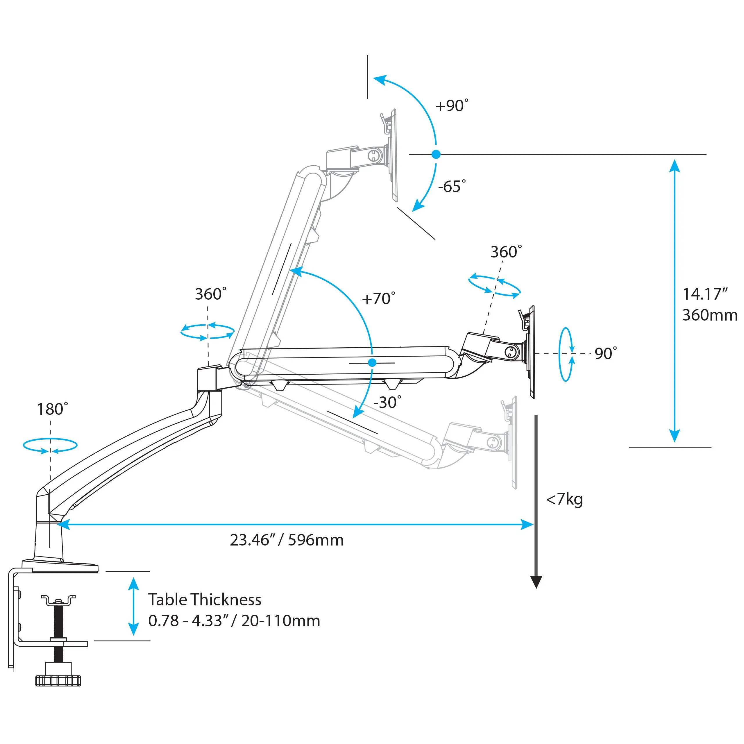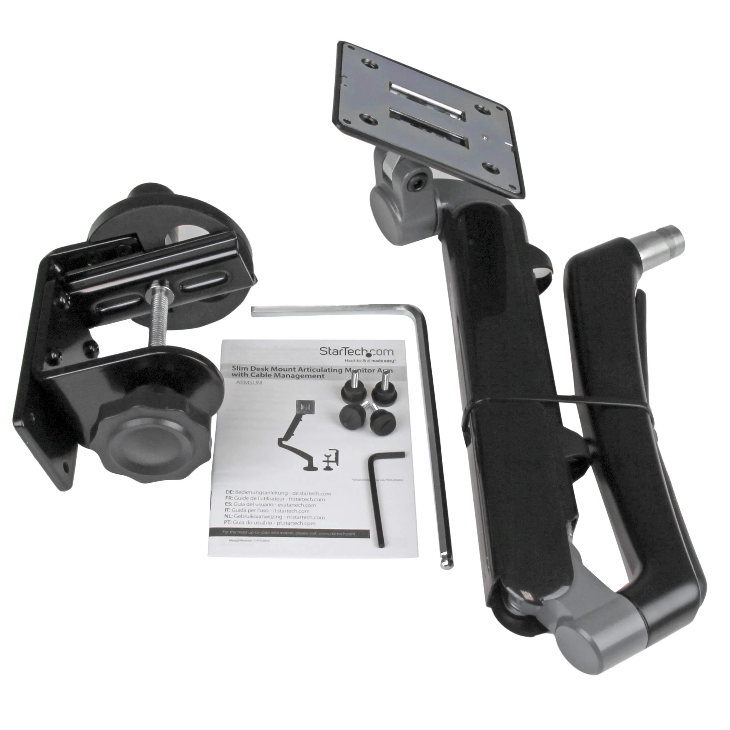 Mount your LCD or LED monitor to a desk, with extension, tilt, pan, swivel and pivot adjustments to find the perfect position - Compatible with LED or LCP flat screen monitors up to 26 inches - monitor stand / monitor arm / computer monitor arm / articulating monitor arm - Mount a display to the side of your desk or table with a wide range of adjustment capability - Mount your display through a desk or above a server cabinet - Rotate displays to portrait orientation for web design and coding.