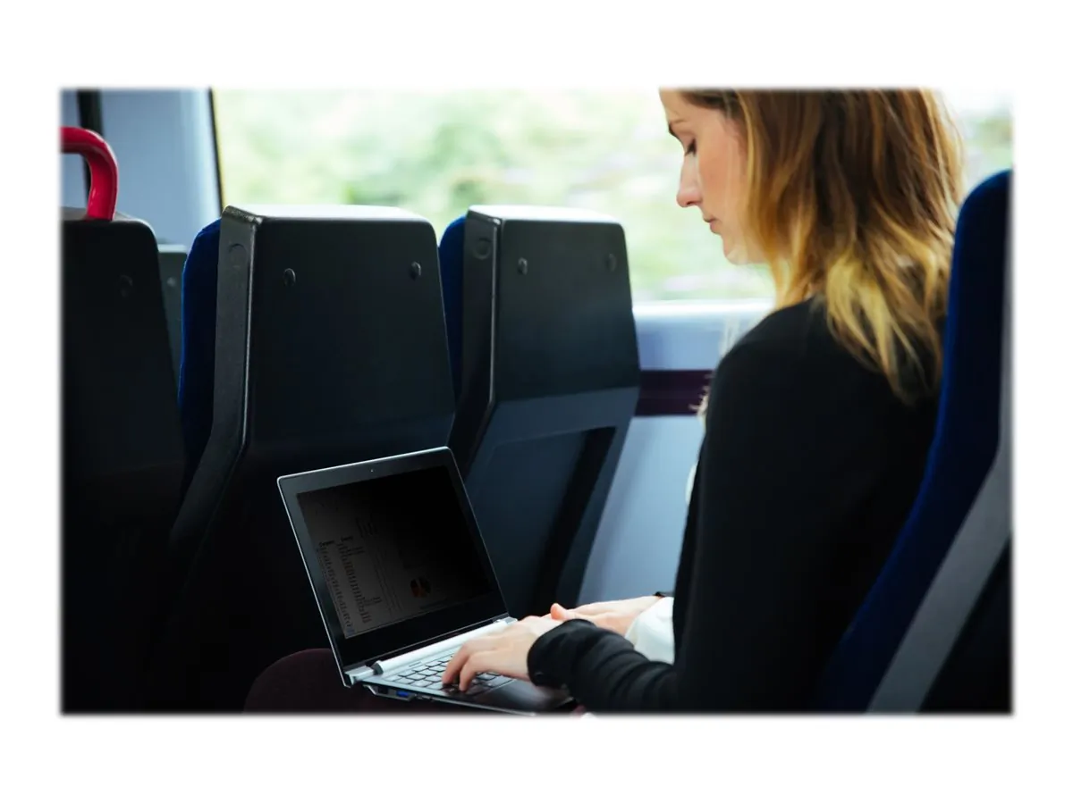 Targus Laptop Privacy Screen is designed to fit 12.5" widescreen laptops with 16:9 ratio screens. To protect your information, tiny vertical blinds on the surface of the screen narrow the viewing angle so data is only visible directly in front of the monitor up to 45 degrees away from the center of the screen. Onlookers will only see a dark unclear screen when attempting to view the information from a side angle. In addition to providing security, the privacy screen also blocks the glare to help reduce eye strain.