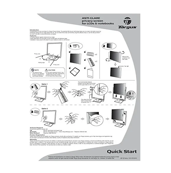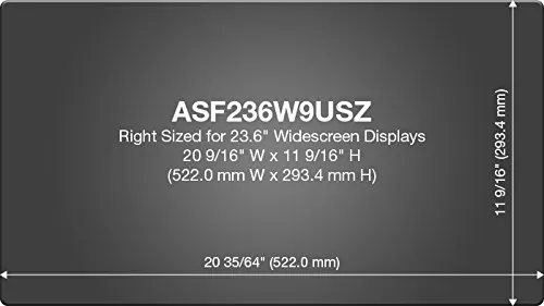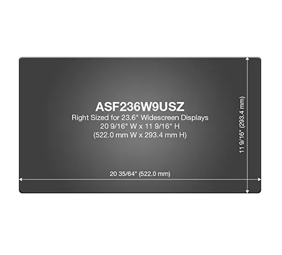 The Targus Privacy Filter is designed to fit 23.6? widescreen LCD monitors with 16:9 ratio screens. To protect your information, tiny vertical blinds on the surface of the privacy screen narrow the viewing angle so data is only visible directly in front of the monitor up to 30 degrees away from the center of the screen.