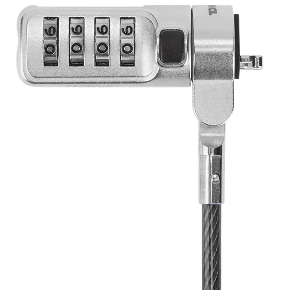 The DEFCON Trapezoid Serialized Combo Cable Lock is a sturdy locking device with a pass-through loop on one end and a lock on the other. The 6.5-foot durable galvanized steel from which the cable is constructed is both cut- and rust-resistant so that it?s nearly impossible to destruct. And if someone attempts to remove the lock, it will noticeably damage the computer, alerting you to potential theft and preventing resale.