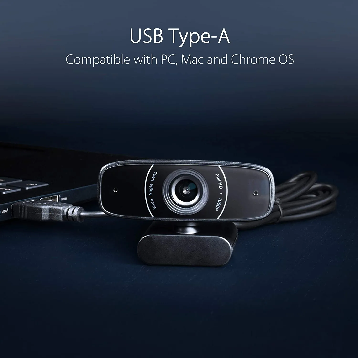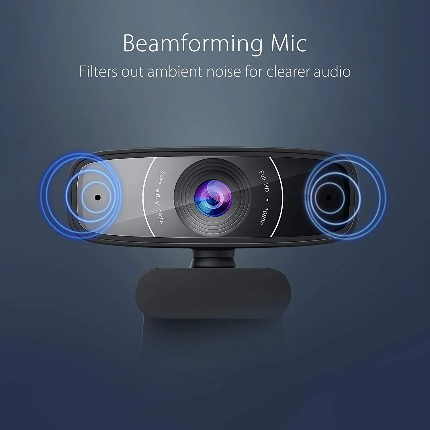 ASUS Webcam C3 1080p HD USB Camera - Beamforming Microphone, Tilt-adjustable, 360 Degree Rotation, Wide Field of View, Compatible with Skype, Microsoft Teams and Zoom