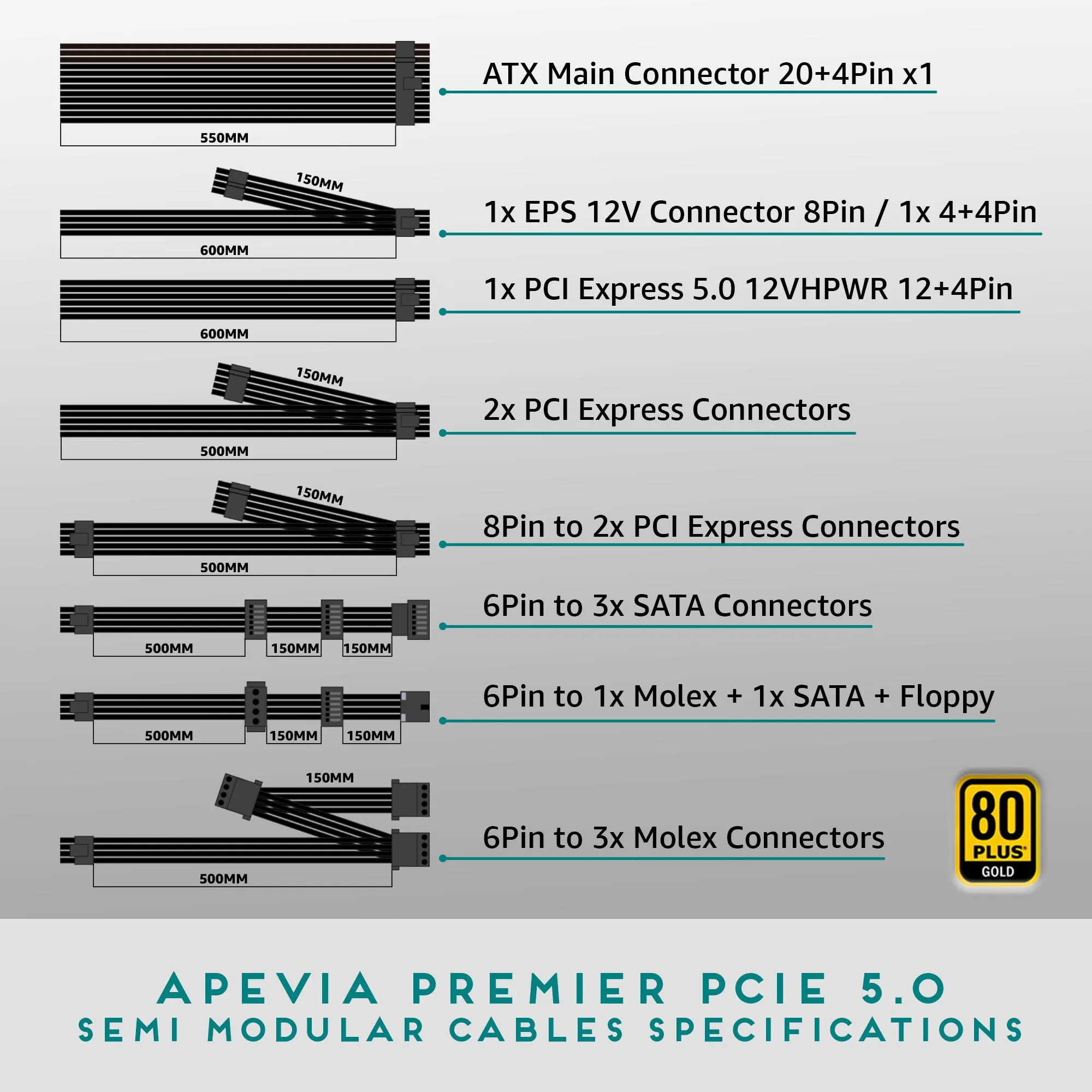 Apevia Premier ATX-PM850W 850W PCIe 5.0 Power Supply