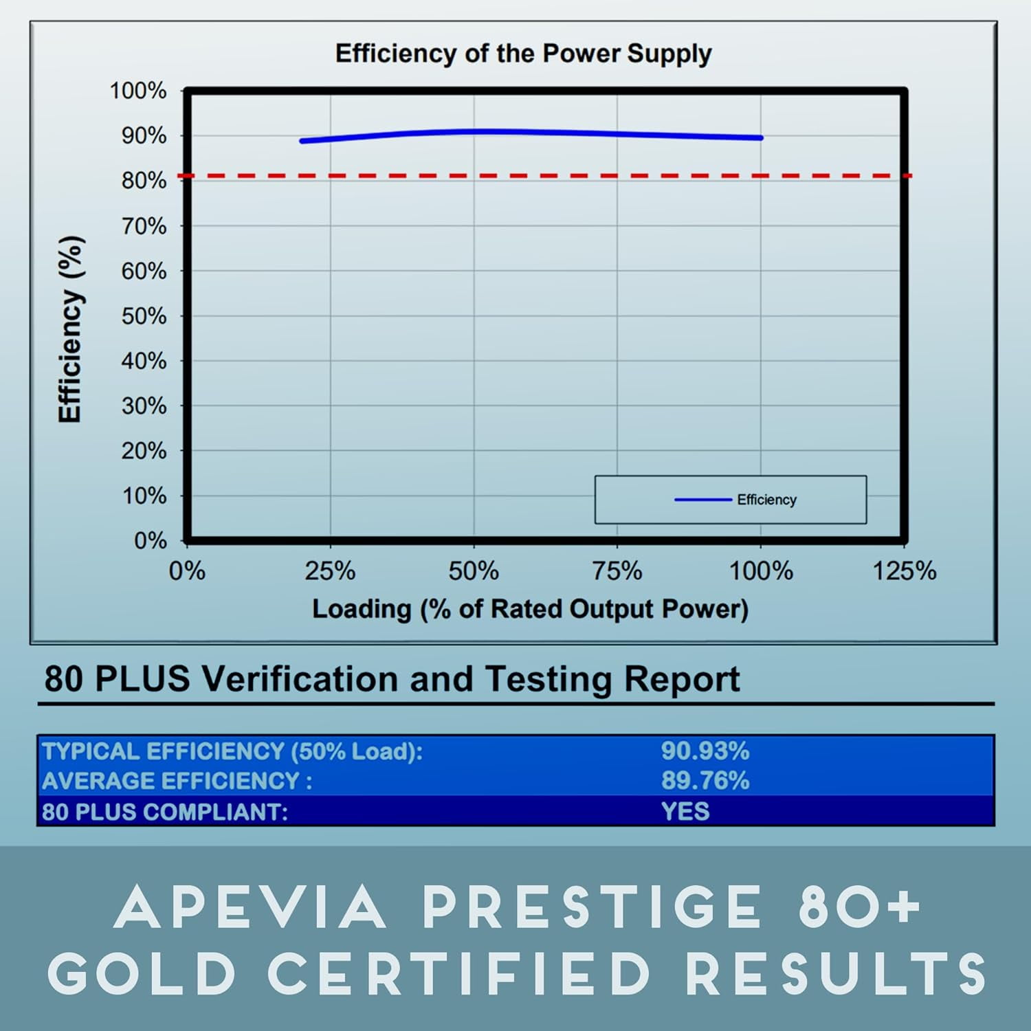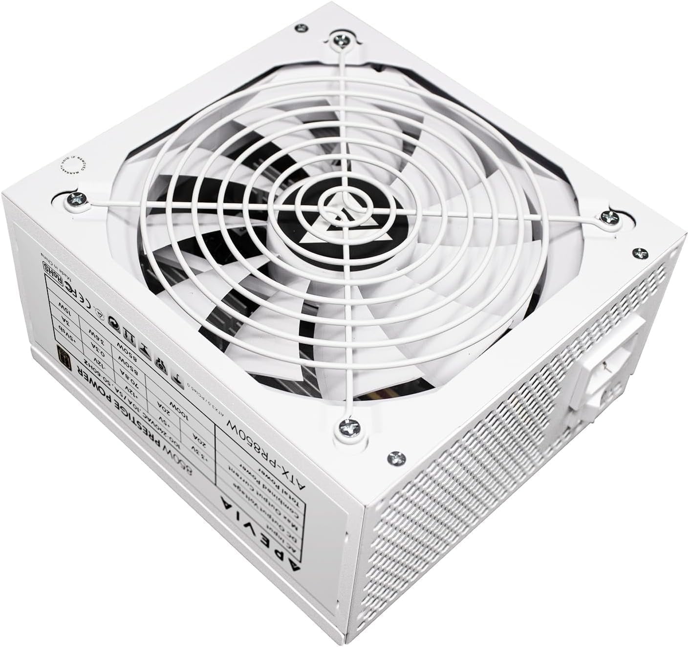 Apevia ATX-PR850W-WH PCIE 5.0 & ATX 3.0 Prestige 850W 80+ Gold Rated, PCIE 5.0 / Gen 5 12VHPWR Connector, Active PFC ATX Gaming Power Supply White