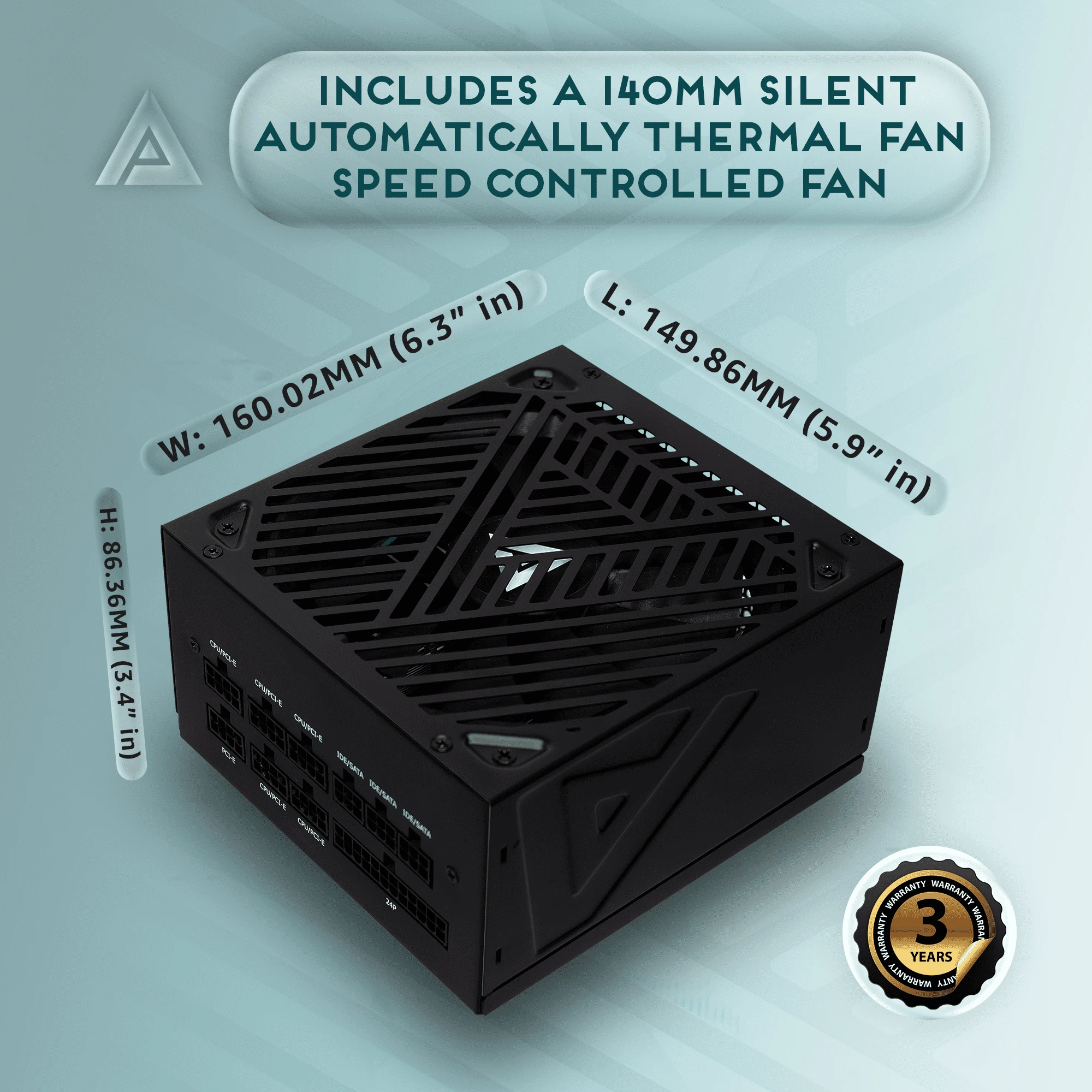 This power supply is compatible with ATX 3.0 and 3.1 standards and features PCIe 5.1 connectivity, providing sufficient power for high-end graphics cards. Its robust 140mm silent fan ensures effective cooling while minimizing noise, making it perfect for gaming rigs.