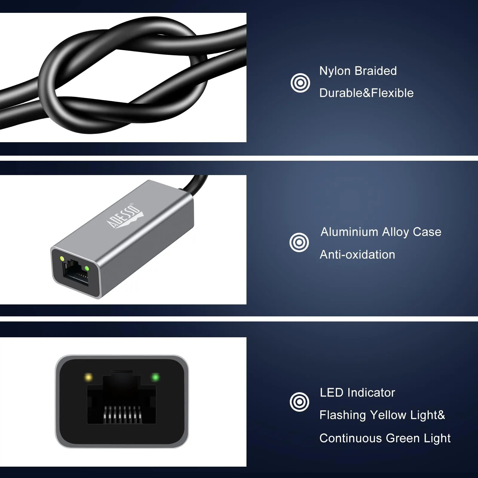 Experience seamless internet connectivity with our USB-C Ethernet Adapter, designed for speed and reliability. This adapter supports fast data transfer up to 1 Gbps, making it perfect for gaming, streaming, and downloading large files.