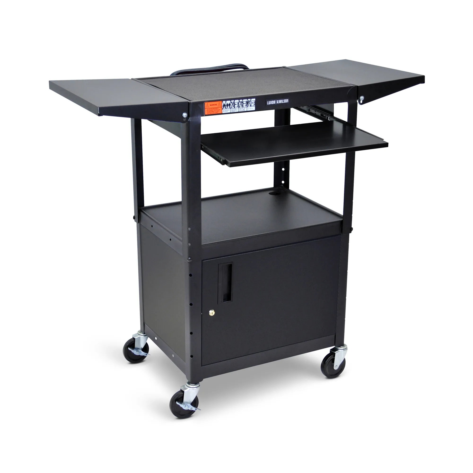 Luxor Adjustable A/V Cart with Keyboard Tray & Drop Leaf Shelves