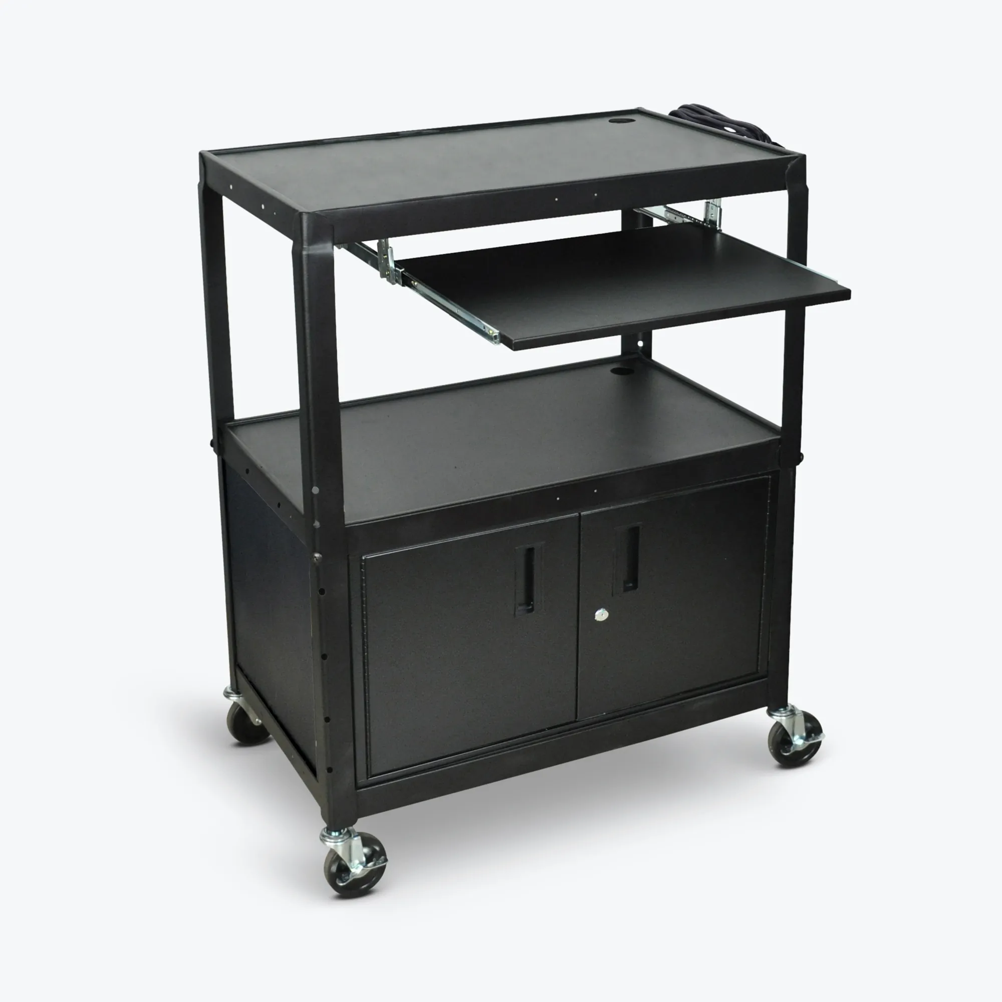 Luxor Extra Wide Adjustable A/V Cart with Cabinet & Shelf