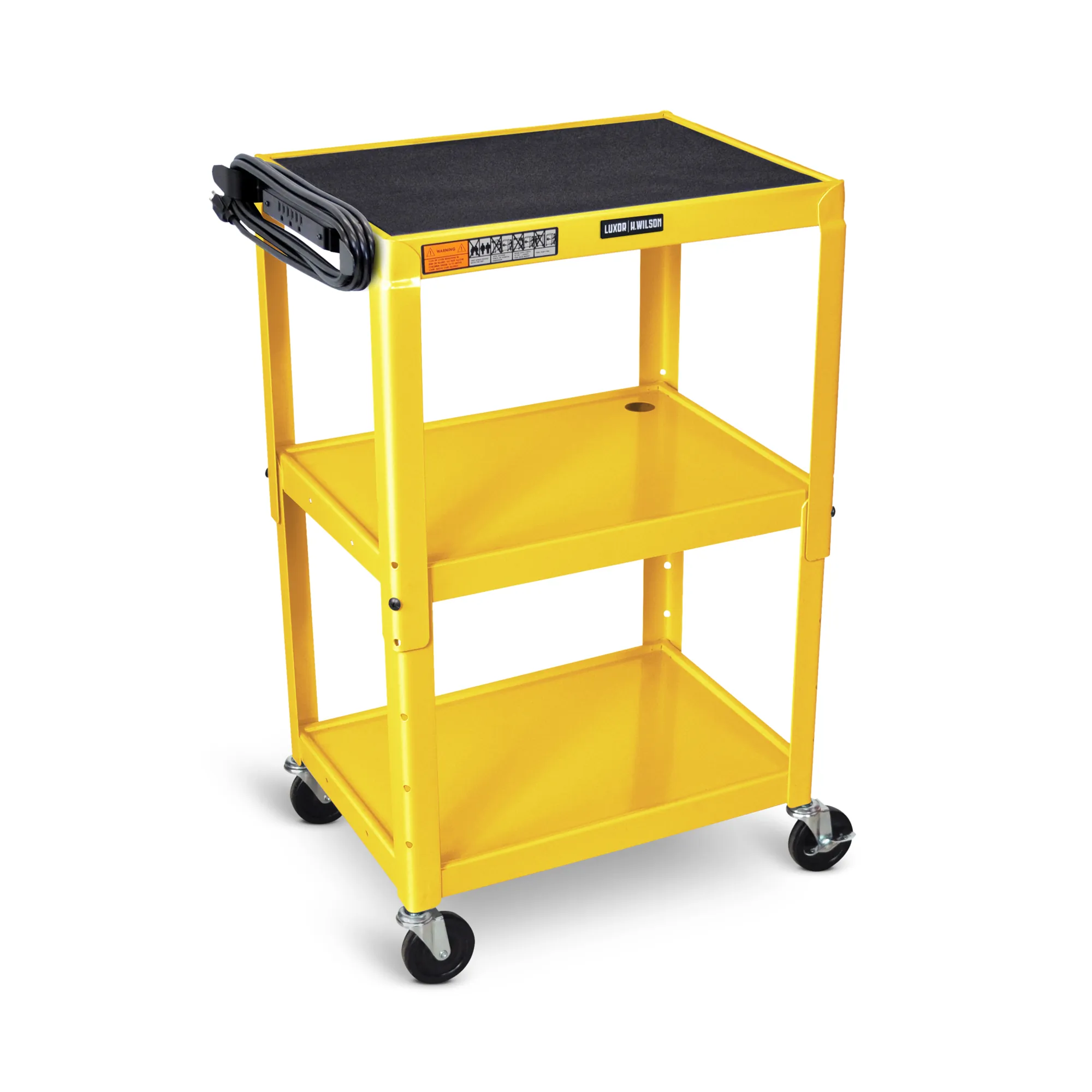 This versatile utility cart is designed to securely store and transport your valuable electronic equipment from room to room. Constructed with durable steel and featuring robotically welded shelves, it ensures long-lasting use in tough environments.