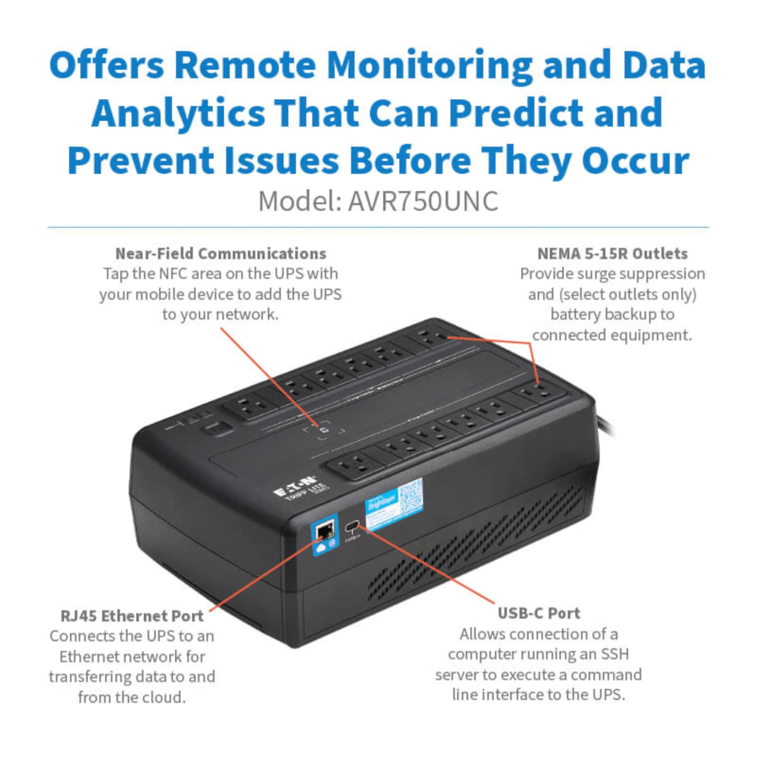 750VA 450W 120V AVR CLOUD-CONNECTED UPS WITH REMOTE MONITORING 12 5-15R BATTERY