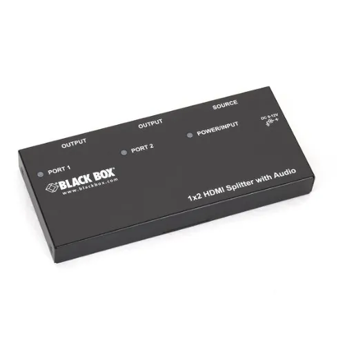 Easily, affordably duplicate digital video from one source on two HDMI displays. Fully HDCP compliant. Supports EDID display information. Blu-ray(r) ready for high-definition display. Supports UXGA WUXGA or Full HD 1080p resolutions. No need to install any software or interface cards. Automatic power-save when signal input is lost. LEDs indicate signal activity on each port. Simple to set up and use. Split and distribute HDMI video plus audio from a satellite or set-top box PC or other HDMI source device to two digital screens. The 1 x 2 HDMI Splitter with Audio splits an HDMI source between two outputs simultaneously without signal loss. Simply connect the HDMI cables power up the system and you're ready to duplicate a video image for two displays up to 16.4 feet (5 m) away. You can also cascade multiple units to expand your broadcast to additional HD screens. Providing crisp clear video output the splitter supports HDMI display resolutions of up to UXGA (1600 x 1200) WUXGA (1920 x 1200) or Full HD 1080p (1920 x 1080). Use the 1 x 2 HDMI Splitter with Audio to output high-definition video from a Blu-ray or DVD player as well as multi-channel audio. It carries the best signal from source to displays and its high bandwidth enables you to transmit large amounts of information at a very high rate of speed. Plus it features separate 3.5-mm jacks for distributing audio on each channel. This is particularly useful in digital signage and other AV distribution applications where instead of the audio capabilities of the connected display devices you want to use existing high-power speakers and high-fidelity audio receiver equipment for audio output. Use the splitter's separate non-HDMI audio channels for instance in a shopping mall or on school campus - venues where you have a quality PA speaker system installed and want to use it to amplify audio over ambient noise. To connect to DVI display devices just order adapters.