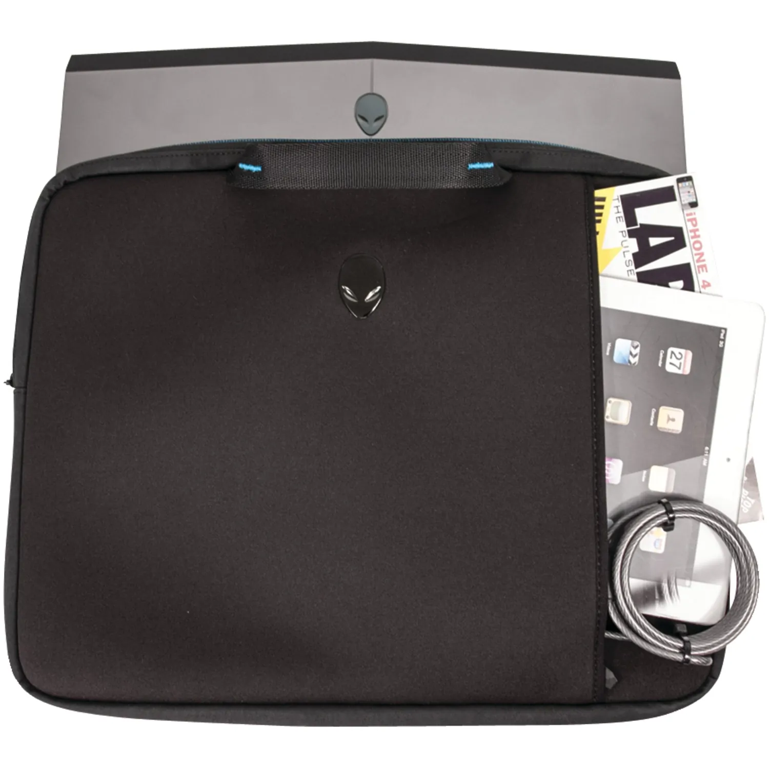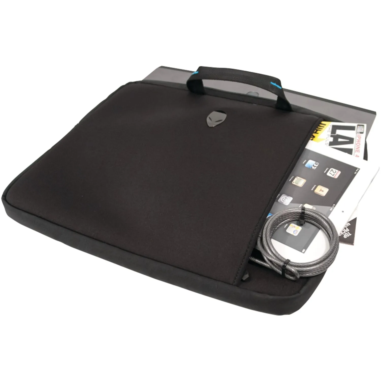 Whether it's for transporting your 15.6 in. notebook by itself or in another bag for added protection, the Alienware Vindicator 2.0 Neoprene Sleeve has you covered. Flexible neoprene padding conforms to your notebook to create a perfect fit and ward off scrapes and scratches. The nonslip base keeps the sleeve from moving where it's placed, while the top loading nylon handles have your system ready to grab and go. An oversized exterior zippered pocket allows you to store additional accessories.