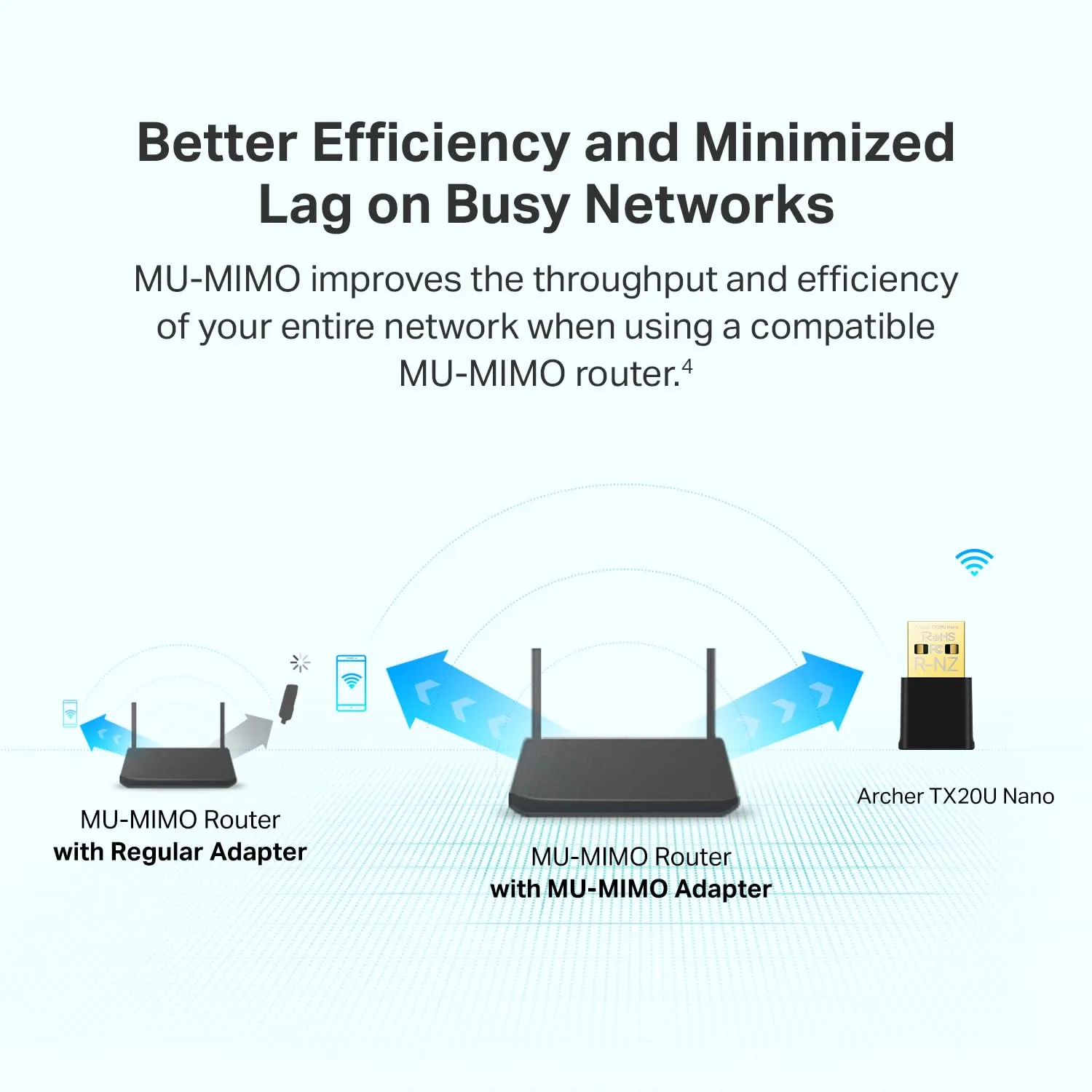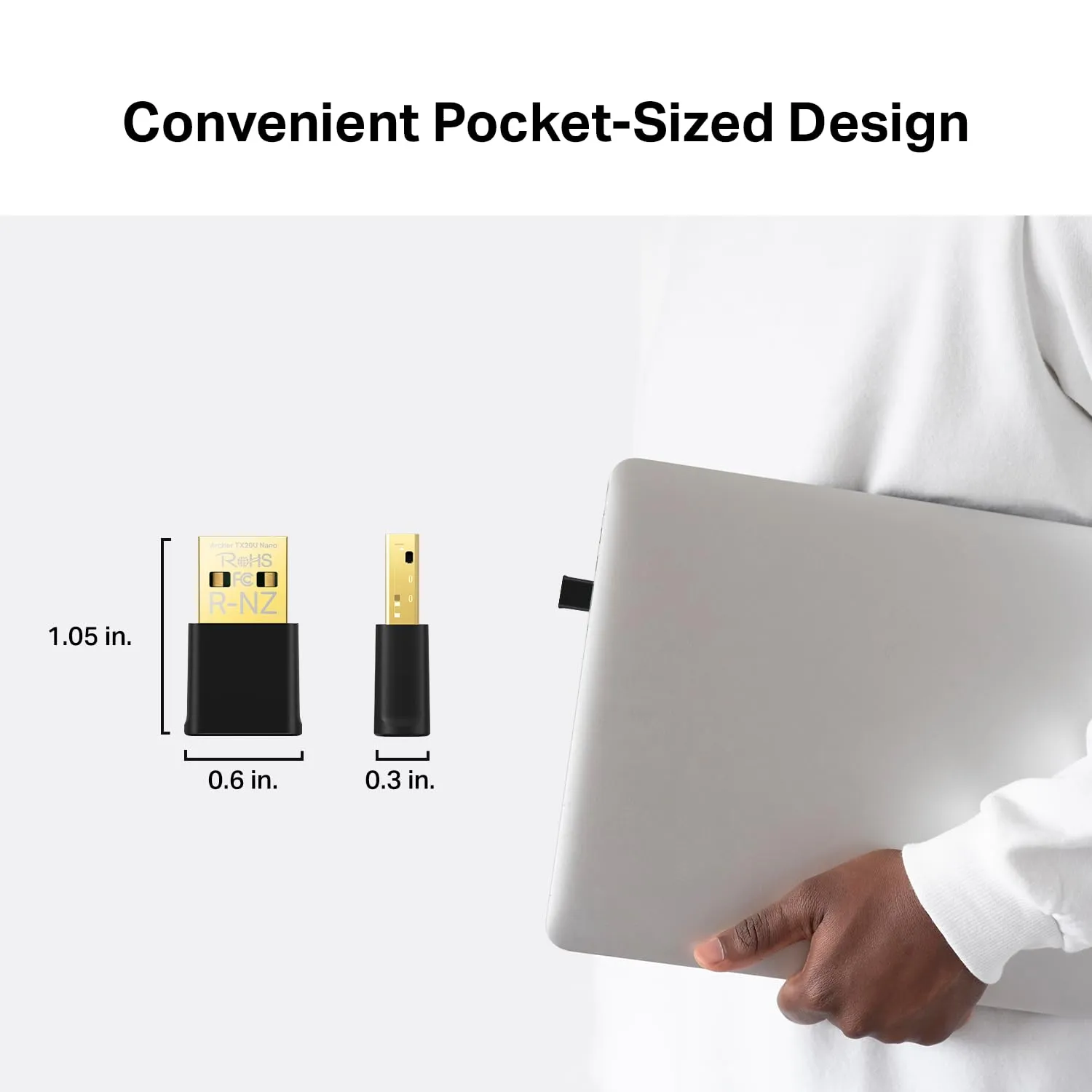 With its dual-band technology, this adapter supports both 2.4GHz and 5GHz frequencies, ensuring optimal performance in any environment. Its sleek nano design makes it easy to carry and simple to use.