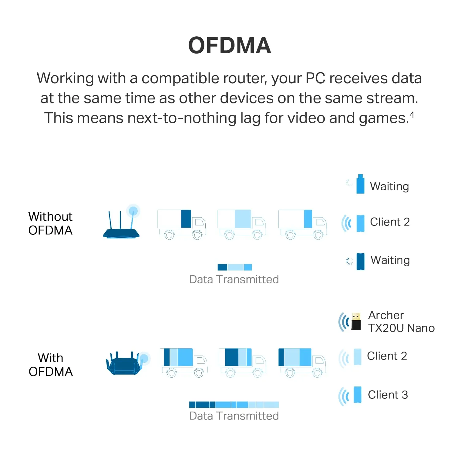 Experience high-speed internet access with the AX1800 Nano Dual Band Wi-Fi 6 USB Adapter. This compact device is designed to upgrade your computer's Wi-Fi capabilities, providing robust and reliable connectivity for online gaming, streaming, and browsing.
