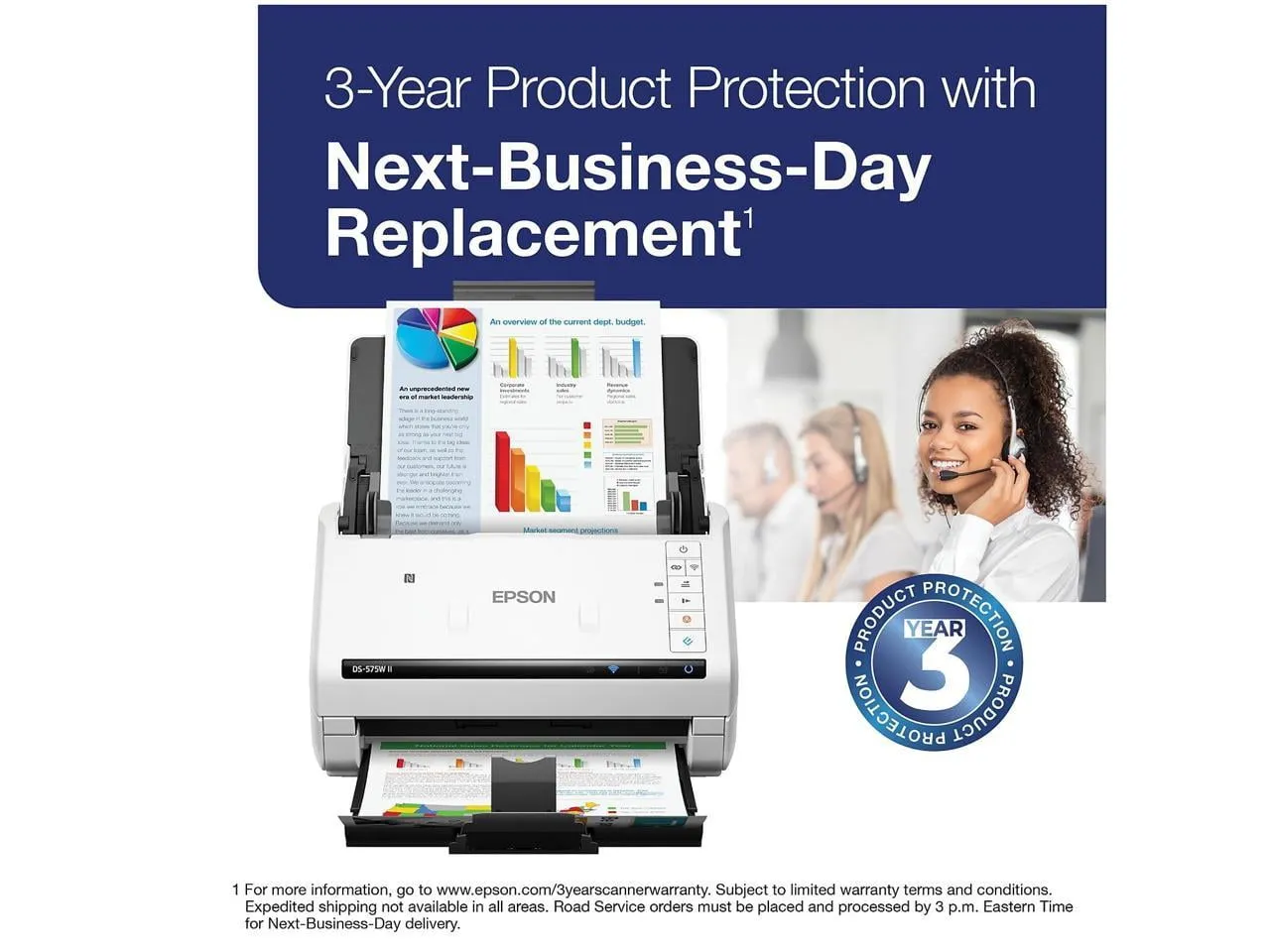 The EPSON DS-575W II Wireless Document Scanner is designed for efficiency and convenience in a compact format. With its advanced wireless technology, it allows for easy scanning of documents without the need for cumbersome cables. Ideal for home or office use, this scanner excels in performance and versatility.