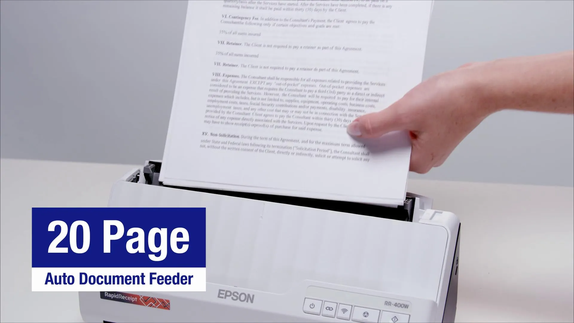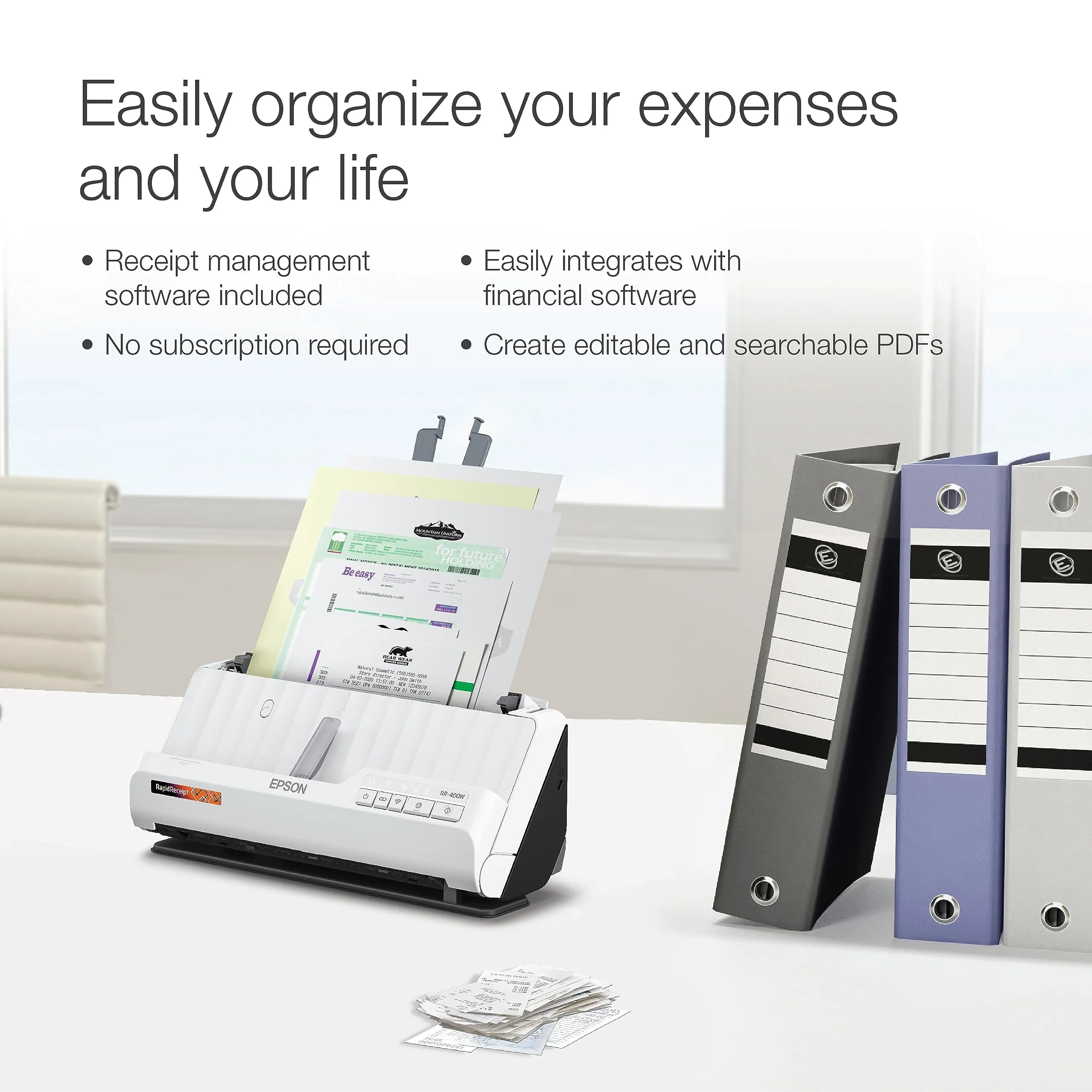 The RAPIDRECEIPT RR-400W is a state-of-the-art wireless desktop receipt and document scanner designed to simplify your data management. Ideal for both personal and professional use, it features an automatic document feeder for quick and efficient scanning of multiple pages.