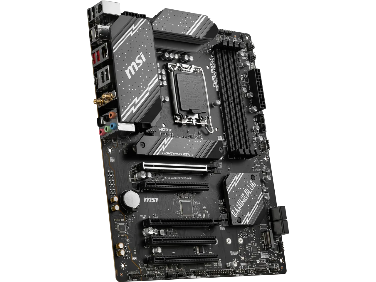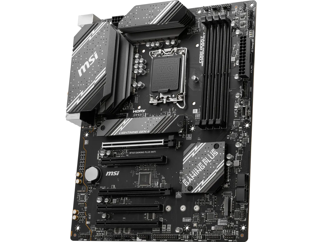The MSI B760 GAMING PLUS WIFI motherboard is designed for builders who demand high performance and advanced features. This ATX motherboard supports Intel Socket 1700 processors and up to 128GB of DDR5 memory, ensuring robust multitasking capabilities.