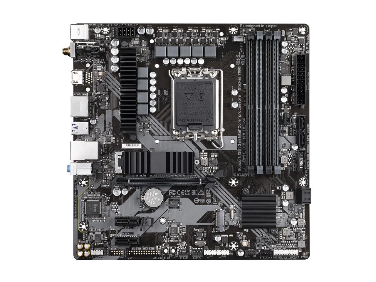 The GIGABYTE B760M DS3H AX is a high-performance motherboard designed for Intel LGA 1700 processors. This M-ATX motherboard supports DDR4 memory and features dual M.2 slots for ultra-fast storage options. With PCIe 4.0 support, USB 3.2 Gen 2 Type-C connectivity, and integrated WiFi 6E, it offers robust networking capabilities. The 2.5GbE LAN ensures reliable and speedy internet connections, while Q-Flash Plus and PCIe EZ-Latch make installation and updates seamless.