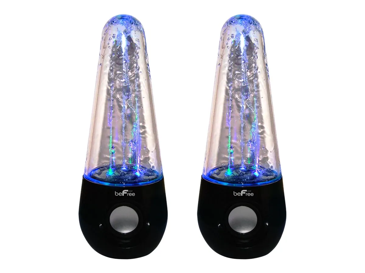 Add a captivating touch to clear sound with these BeFree Sound Bluetooth Wireless Multimedia LED Dancing Water Speakers. These speakers feature multicolored water jets that dance to the beats of your favorite hits. Not only are they fun and fashionable, they will make you experience clear and quality sound!