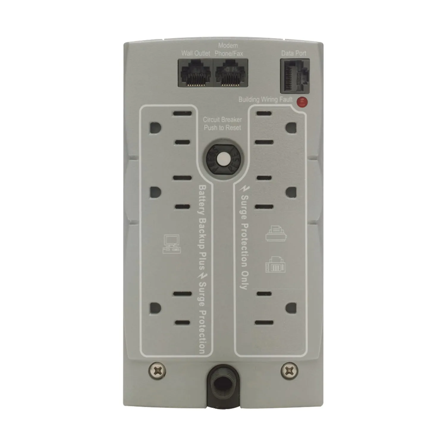 • 6 outlets--3 UPS/surge, 3 surge only;• 1,020 Joules;• 2 block-spaced outlets;• RJ11 modem/fax/DSL protection (2-wire single line);• Audible alarm;• LED status display with on line/on battery/replace battery & overload indicators;• User-replaceable batteries;• USB compatible;• Beige;• UL(R) listed;• 6ft cord;• Includes PowerChute(R) software;• 3-year warranty;• Output power capacity: 350VA/210W;• Typical run time: 20 min at half load, 5 min at full load;• Lifetime $100,000 equipment protection policy;