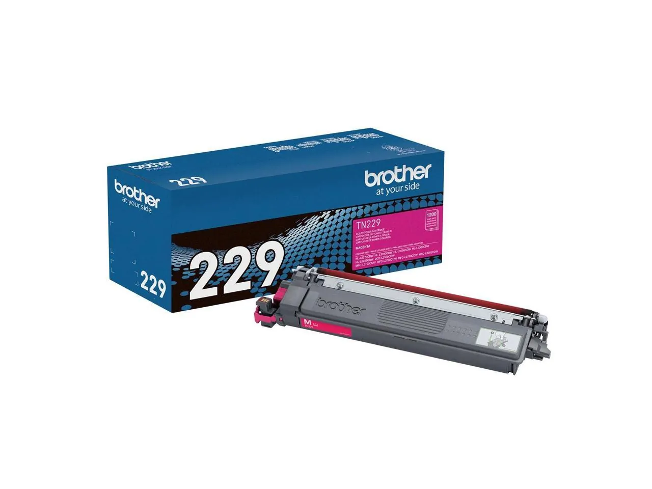 Print confidently with Brother Genuine TN229M Standard Yield Magenta Toner Cartridge. The only toner brand recommended for Brother multifunction and all in one digital color printers. Produces vibrant, eyecatching colors on every page while providing reassuring compatibility. Delivering consistently reliable results and effective page yields up to 1200 pages, Brother Genuine Toner is the trusted choice for creating professional, laserquality business documents that demand attention and get noticed. For worryfree printing, use with Brother multifunction and all in one digital color printers with laser quality: HLL3220CDW, HLL3280CDW, HLL3295CDW, HLL3300CDW, HLL8245CDW MFCL3720CDW, MFCL3765CDW, MFCL3780CDW, and MFCL8395CDW