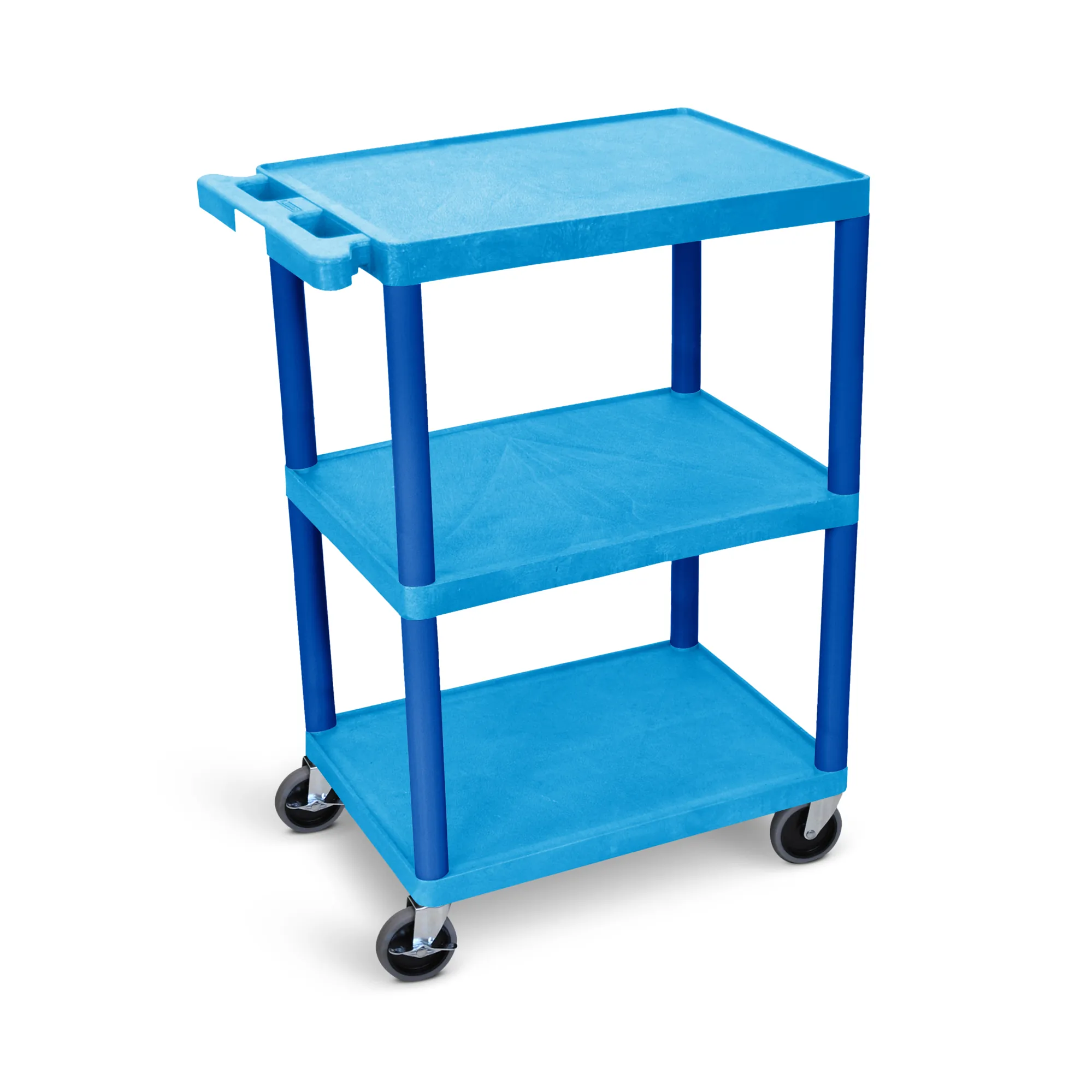 The ergonomic push handle is molded into the top shelf, making it easy to maneuver.