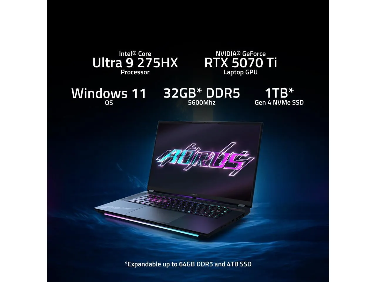 The AORUS MASTER 16 is a high-performance gaming laptop, powered by the cutting-edge GeForce RTX 5070 Ti graphics card and the Intel Core Ultra 9 275HX processor. Designed for gamers and creators alike, this laptop combines stunning visuals with exceptional speed and efficiency.