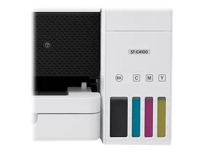 The WorkForce ST-C4100 Supertank Color MFP, powered by PrecisionCore Heat-Free Technology™, makes your business look its best when it means the most. Offering remarkable productivity for small work teams, it features revolutionary printing with easy-to-fill, supersized ink tanks. And, it includes up to 2 years of ink in the box - enough to print up to 14,000 pages black/11,200 color. Your CFO will appreciate the fact you save up to 90 percent with low-cost replacement ink bottles vs. ink cartridges, equivalent to about 90 individual ink cartridges. The WorkForce ST-C4100 also offers a high-capacity 250-sheet paper tray, fax, 2.4" color touchscreen, 30-sheet ADF, fast auto 2-sided printing and convenient wired and wireless networking. Plus, the WorkForce ST-C4100 is compatible with the Epson Smart Panel® app, a powerful tool that makes it easy to setup, monitor, print, scan, order supplies and more right from your hand-held device. And, its 90-degree power cord means the ST-C4100 can easily fit in tight spaces.