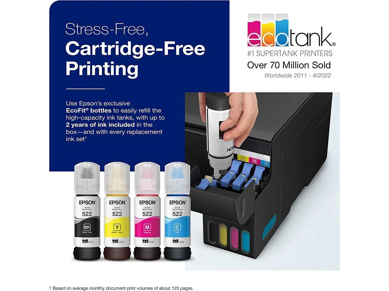 • Cartridge-free design with refillable ink tanks