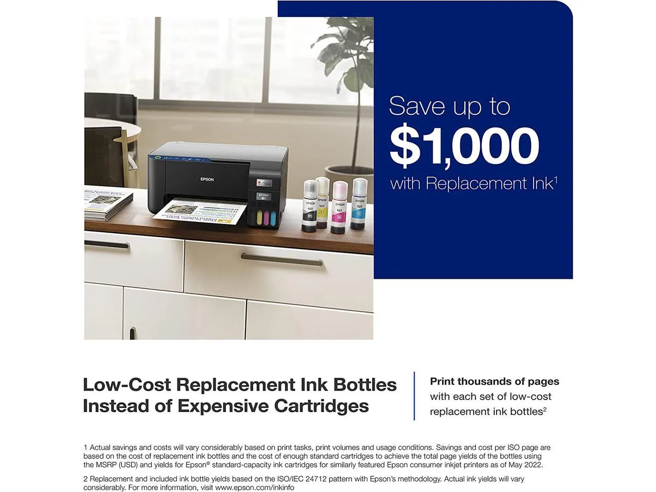 • High-capacity ink bottles to reduce printing costs