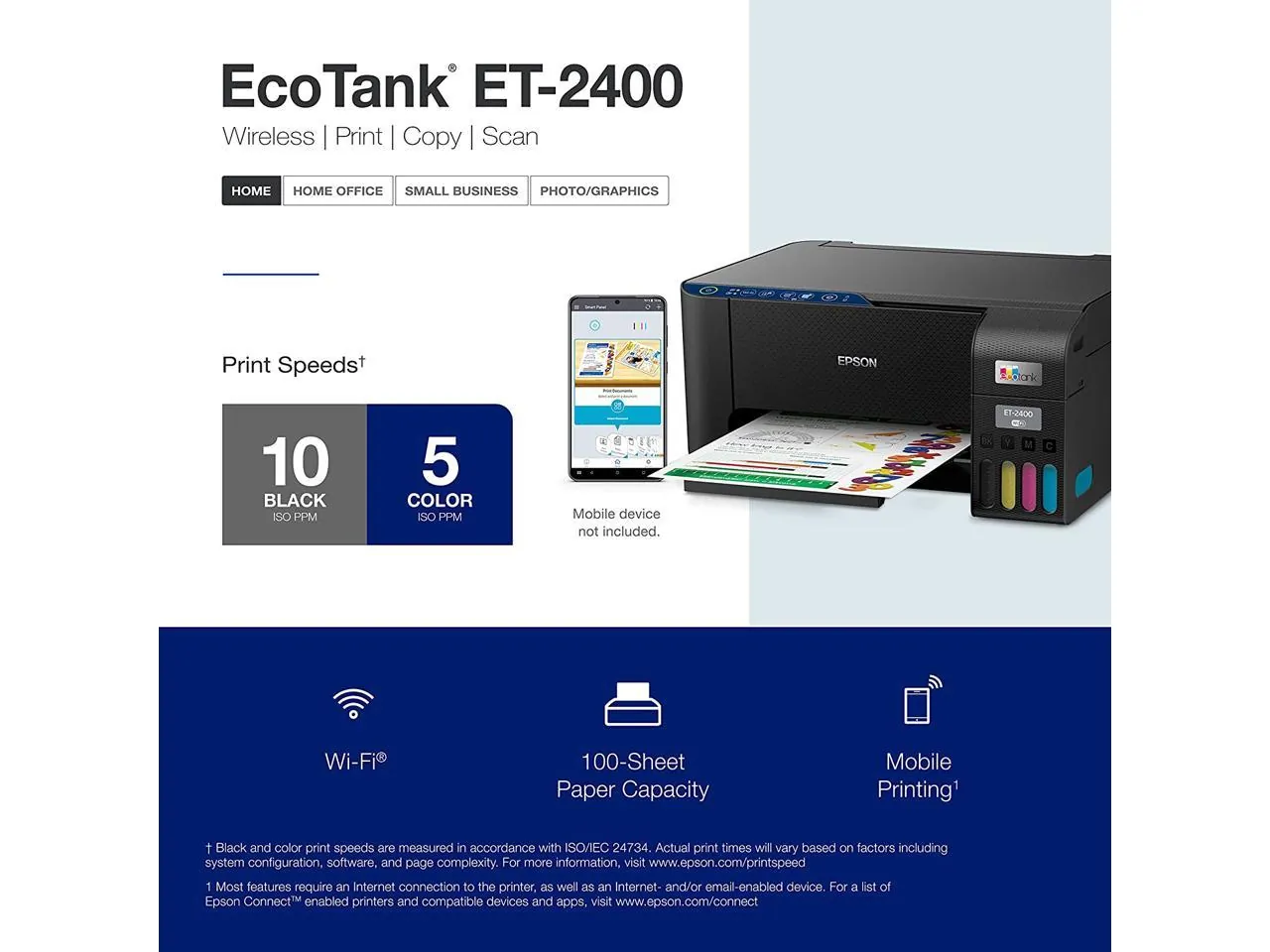Enjoy the convenience of mobile printing and easy setup, making it perfect for everyday printing tasks. The ET-2400 is designed to deliver high-quality prints with vibrant colors and sharp text, ensuring that all your documents and photos look professional.