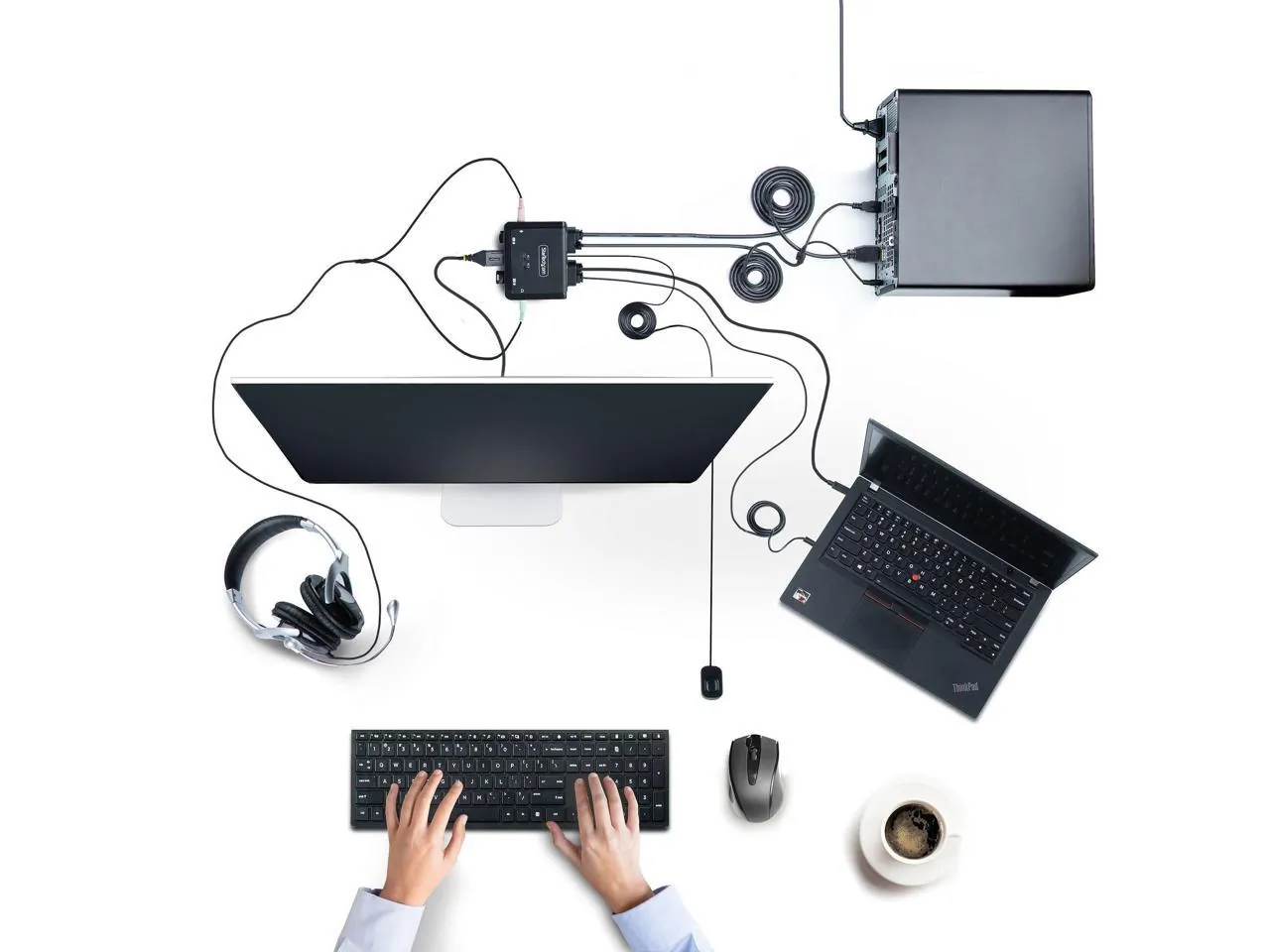 It's designed for seamless switching between devices, making it ideal for workplaces, home offices, or any setup where multiple computers need to be accessed quickly and efficiently.