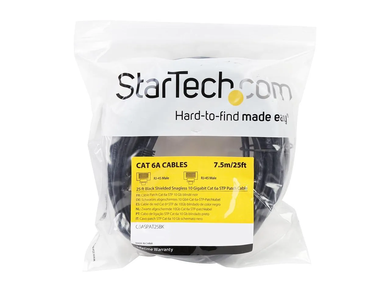 StarTech.com C6ASPAT25BK 25 ft. Cat 6A Black Shielded Network Ethernet Cable